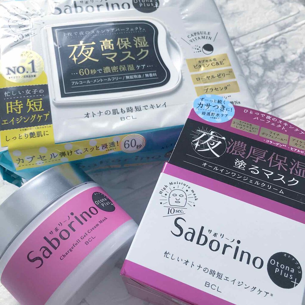 - オトナ肌のための時短エイジングケア*シリーズ「サボリーノ オトナプラス」からひとつで6役の夜用のオールインワンジェルクリームマスクが登場! まるでシートマスクをずっと貼っているような、濃厚保湿タイプの塗るマスクです。 ■化粧水+乳液+美容液+クリーム+マスク+アイケア ■大人肌のための贅沢な美容成分配合(セラミド*1/レチノール*2/ライチポリフェノール*3/コラーゲン*4/ヒアルロン酸Na/リンゴ酸(角質ケア)) * 年齢に応じたお手入れのこと *1 セラミドAP、セラミドEOP、セラミドNP *2 パルミチン酸レチノール *3 ライチポリフェノール含有ライチー種子エキス *4 水溶性コラーゲン(以上全て保湿)
