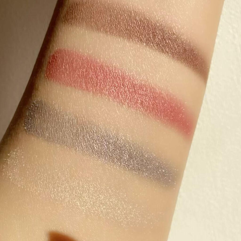 【SUQQU】✔️デザイニングカラーアイズS03霜花赤みブラウンがシックで惹かれたこちら…マット3色にラメが1色と潔い配色なのも好きです!甘艶のラメを控えめにしてくすませた感じかなーとおもいつつなんか外視感あるなと思ったら廃盤になったカネボウ...