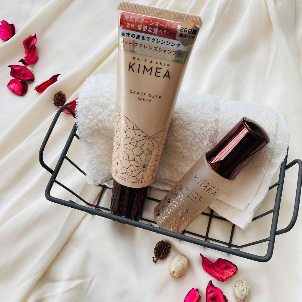- <地肌スキンケア用美容液> 「セラーゲン(*2)」を最高濃度(*4)で配合。角質層まで浸透してうるおいを内側まで満たし、ハリのある地肌へと導きます。 (*2 )セラーゲン(スカルプディープホイップとヘアモイスチャーエマルジョンには含まれない):ナイアシンアミド、トレハロース、パルミトイルジペプチド-7(保湿剤) (*4)「HAIR&SKIN KIMEA(ヘア&スキン キメア)」シリーズ内で