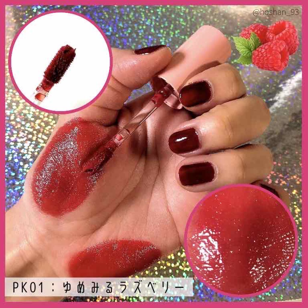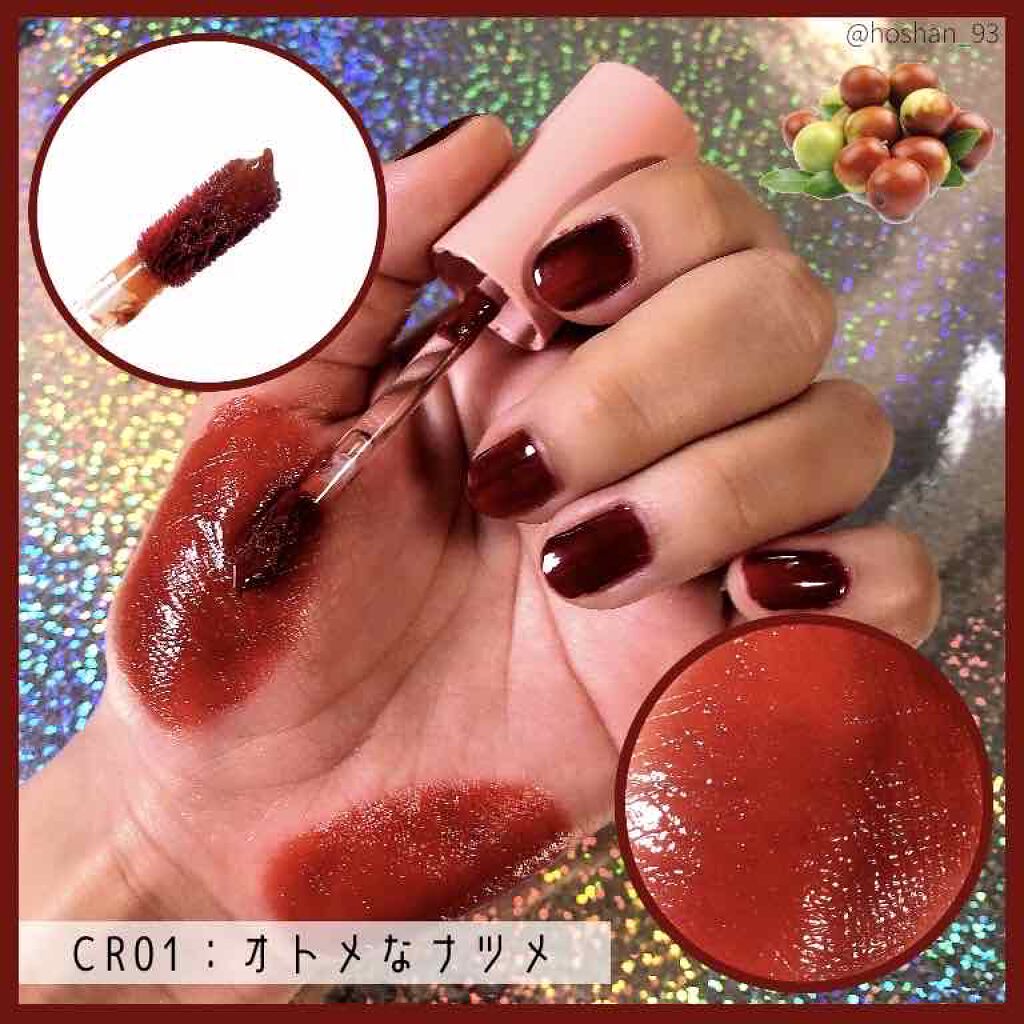 - Point 1 ジューシーなもぎたて果実のような発色が長時間続く Point 2 キラキラ輝くスパークリングジュエリーパウダー配合 Point 3 リップケアオイル配合で、クリアな光沢感のある仕上がり RD03、CR02は公式オンライン限定発売