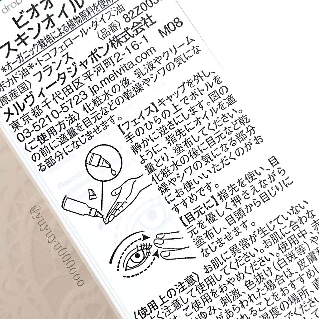 Melvitaビオオイルアボカドオイルビオオイルローズヒップオイルどちらも他のメルヴィータのオイルより保湿力高めでメイク前でも使ってる!他のオイルより保湿力が高い気がするよ!!ただ、匂いは癖があるけど、保湿効果がいいので欠かせないスキンケアア...