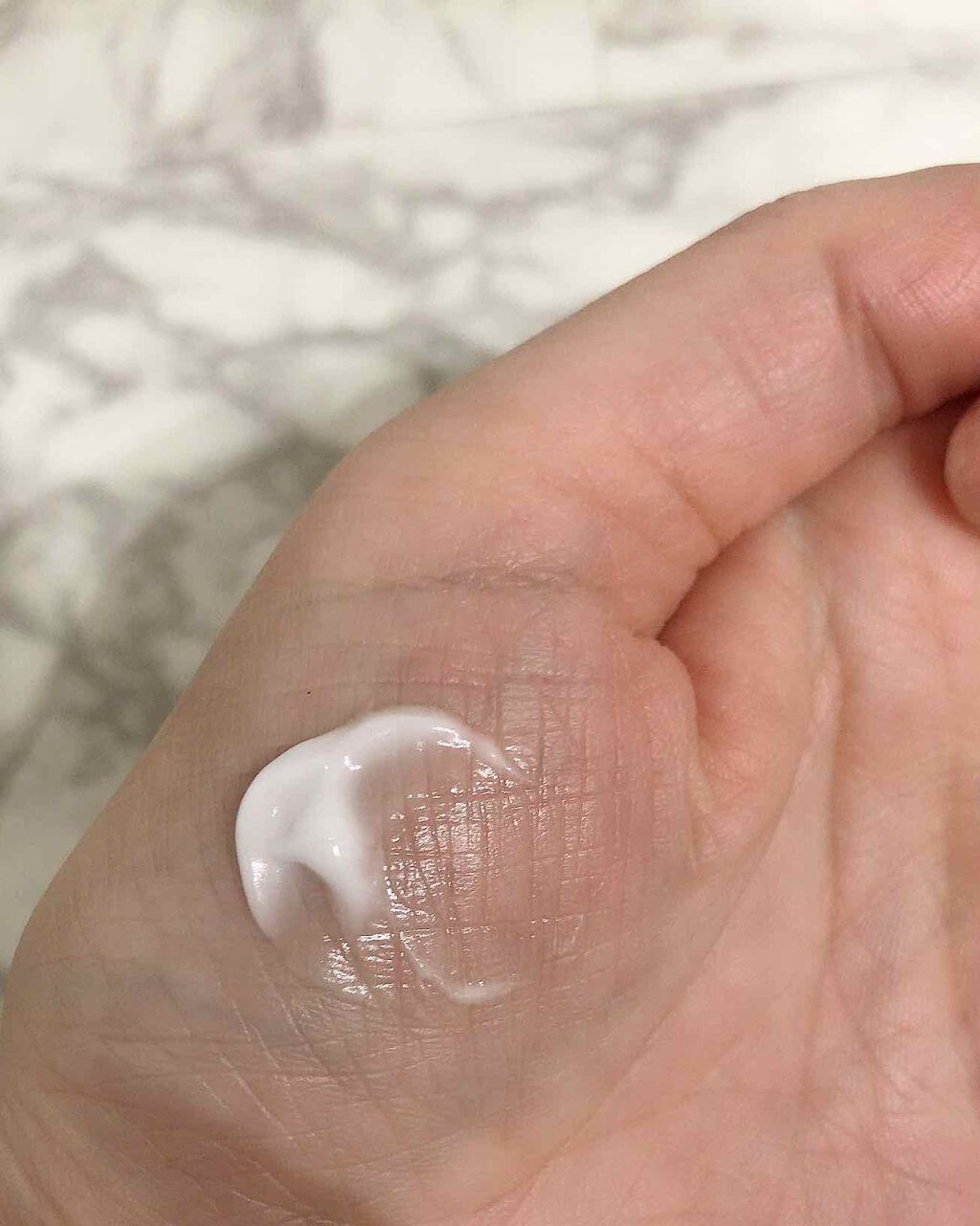 贅沢に美容成分を配合しているクリームは思ったより軽く、みずみずしく、素肌によくのびます。べとつきはしないかな。 プッシュしてエアレスボトルから新鮮なクリームが出てくるから量も調節しやすい🙆♀️ クリームはジェルのようにみずみずしいよ。少し高級化粧品によくあるような独特の香りがします。 ピンク色のエアーレスのボトル プッシュするとクリームが出てきます。