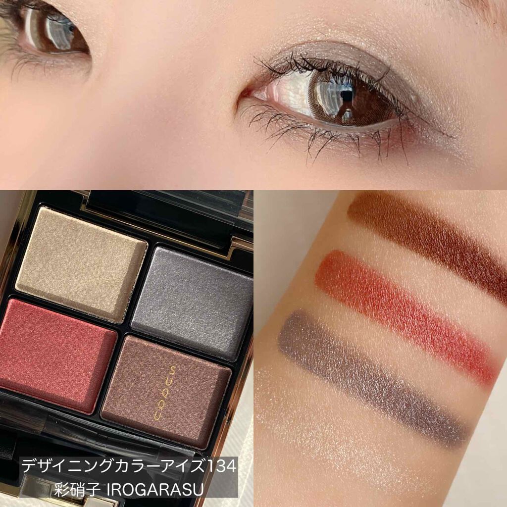 【SUQQU】✔️デザイニングカラーアイズS03霜花赤みブラウンがシックで惹かれたこちら…マット3色にラメが1色と潔い配色なのも好きです!甘艶のラメを控えめにしてくすませた感じかなーとおもいつつなんか外視感あるなと思ったら廃盤になったカネボウ...