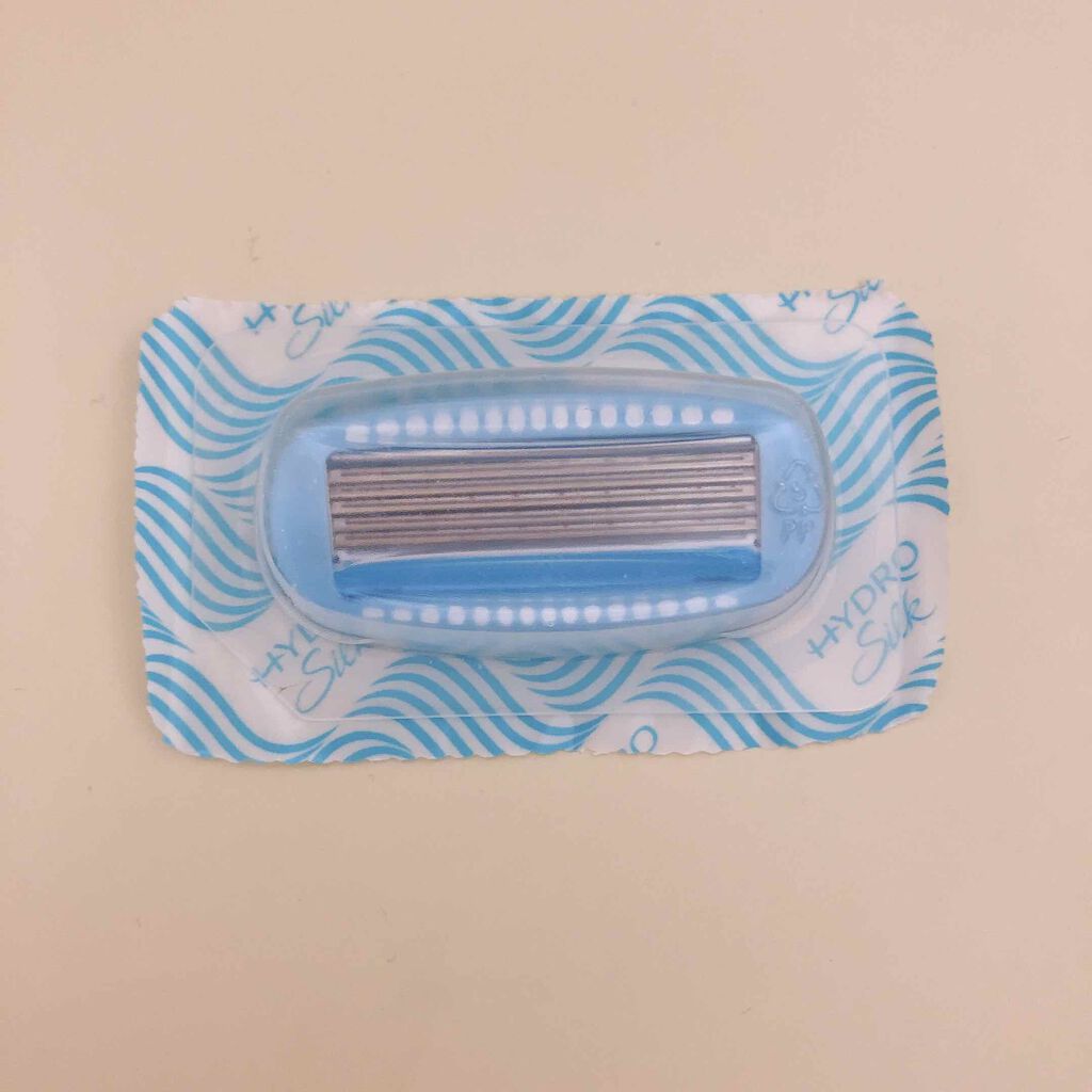 5枚の歯がすっきり毛を剃ってくれること、それでいてカミソリ負けを起こさないことがお気に入りポイントです。 とけだすうるおい美容ジェル(水に触れるとモイスチャーソリッド(シェービング剤)が溶け出しジェルになります)ってところがすごいですよね。 ぽてん、ぷるんとしたテクスチャーで、カミソリ滑りが滑らかになります。