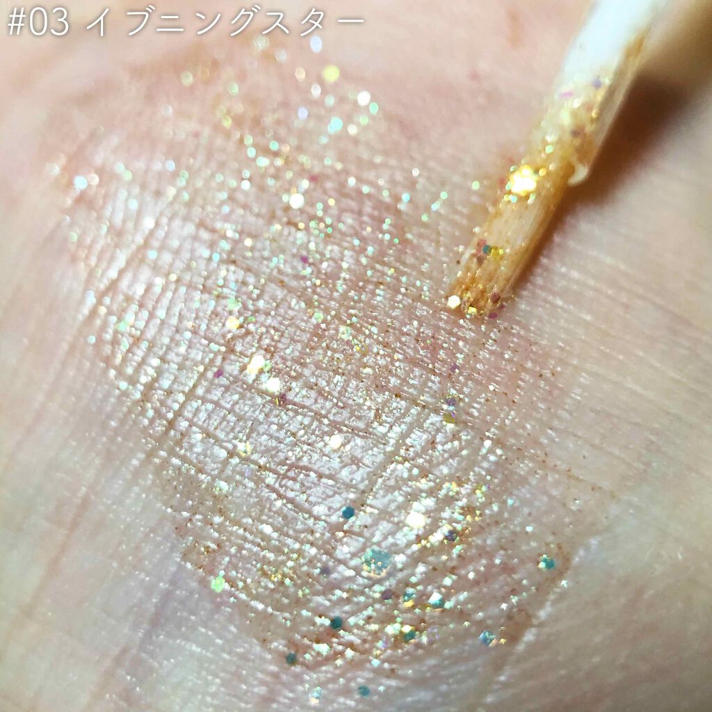 デイリーから特別な日まで幅広く使えるグリッター🫰🏻 一本持ってるといつものメイクが楽しくなること間違いなし🥰 01は細かい繊細なラメ、02~04までは大粒ホロ入りでアイメイクが華やかに仕上がる🐰 ぜひチェックしてみてね💫