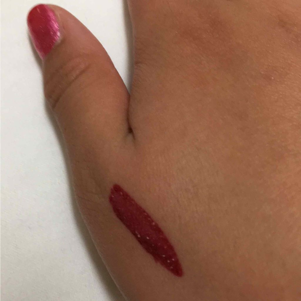 私がもってるのは、RD304です!1枚目が外見2枚目が手に塗った時の発色3枚目が水をティッシュに含ませて強く拭き取ったときです!この色は、ラメが入っててパキッとした赤では、なくぶどう色と🍇赤の中間色って感じです!原宿で買いました!すごくよかっ...