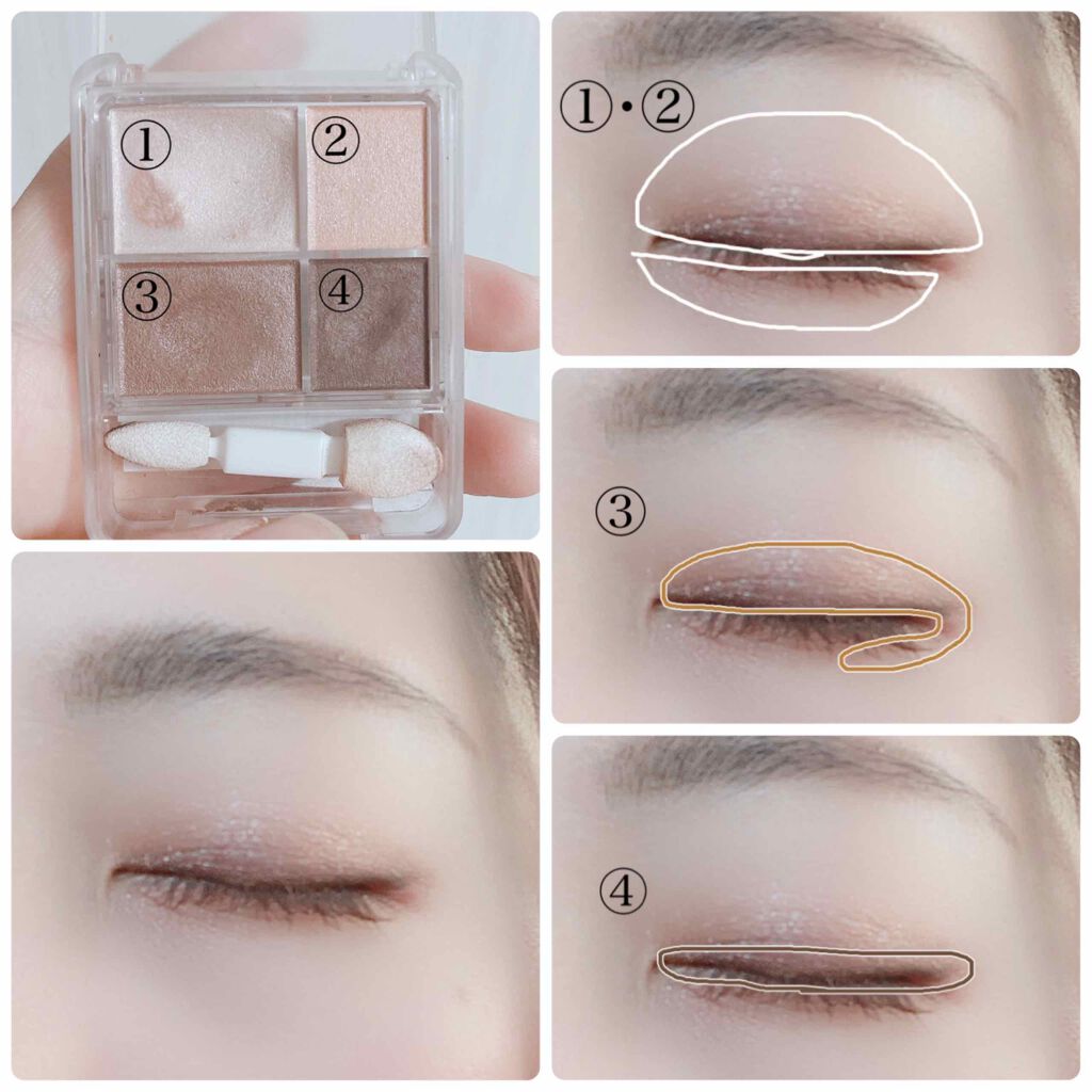- 日常メイク&上品メイクがパレットひとつで完成! 肌なじみの良いカラーで立体的な目もとがつくれるアイシャドウ。 3色の肌なじみの良いカラーを順番に重ねるだけで ナチュラルな立体感メイクが完成します。 華やかに仕上げたいときはニュアンスカラーをプラスオン。 シーンに合わせて仕上がりを選べる4色セットのアイシャドウです。 無香料 【商品特徴】 ・まぶたにフィットするしっとりパウダーで肌への密着性がよく、仕上がりが長持ちします。 ・ひとぬりできれいに発色し、ムラのない仕上がりです。 ・ブラウンやグレーを基調とした肌なじみの良いカラーバリエーションです。 ・しっとりと肌ざわりのよいチップ付。 【使用方法】 ・?ハイライトカラーをチップ(大)でアイホール全体にぬります。 ・?ミディアムカラーをチップ(小)で目の際から上に向かってぬります。 ・?ラインカラーをチップ(小)で目の際にぬります。 ・?お好みでニュアンスカラーをチップ(大)でアイホール全体になじませます。 ※目もとをより大きく、印象的にしたいときは、さらにハイライトカラーを下まぶたの目頭から1/3程度、ラインカラーを下まぶたの目尻から1/3程度入れます。
