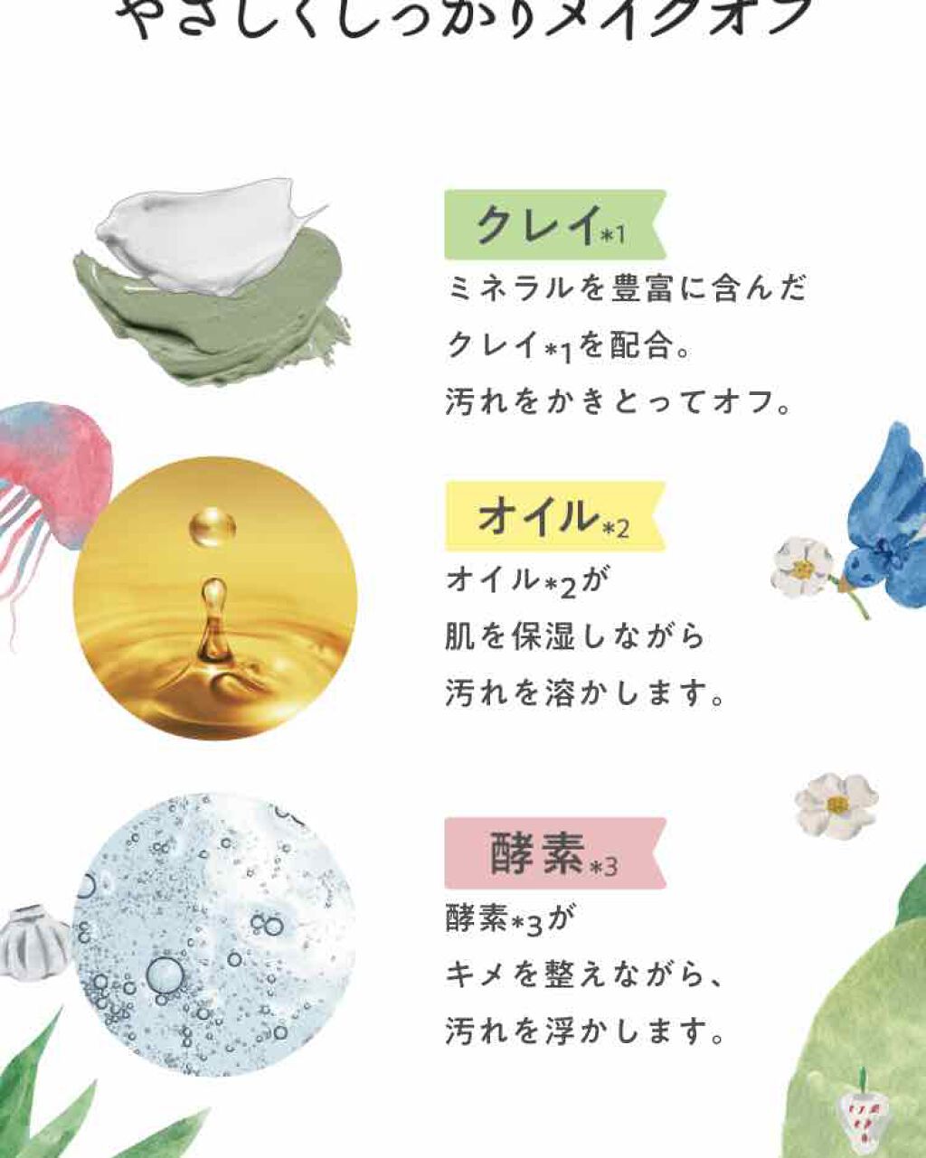 - 気になる毛穴の悩みに ◆1品5役!クレンジングしながら毎日贅沢ケア 毛穴ケア・ハリケア/保湿ケア/角質ケア/マッサージ/メイク落とし ◆“クレイ※1×オイル※2×酵素※3”でやさしくしっかりメイクオフ それぞれ働きの異なる3つの成分(クレイ※1、 オイル※2、 酵素※3)をバランスよく配合。 酵素※3で浮かせて、 オイル※2で溶かし、 クレイ※1でかきとる3段アプローチで毛穴のメイクまでしっかり落とします。 ◆とろけてなめらか“クッションバーム処方”で摩擦レス 固形バームが肌でとろけてなめらかなテクスチャーに変化。 独自の“クッションバーム処方”で肌への摩擦を軽減し ながら、 エモリエント効果でしっとりと洗い上げます。 まつげエクステの方でもOK! ◆セラミド※2配合でしっとりうるおう肌へ 肌のうるおいを守って保護する3種のセラミド(セラミドNG・NP・AP)※2を配合。 クレンジングするたびにうるおう肌に導きます。 ◆敏感な肌にもやさしい6つのフリー やさしい使い心地で、 敏感な肌の方にもお使いいただけます。 パラベンフリー/フェノキシエタノールフリー/エタノールフリー/合成ポリマーフリー/サルフェートフリー/合成着色料フリー ◆こだわりの成分を配合 厳選したこだわりの成分が、 気になる大人の毛穴・ハリの悩みにアプローチします。 海泥※1×オイル※2×酵素※3配合で、 やさしくしっかり落とすクレンジングバーム。 しっとりうるおう、 大人の毛穴レス※4肌へ。 リラックスできるハーバルシトラスの香り。