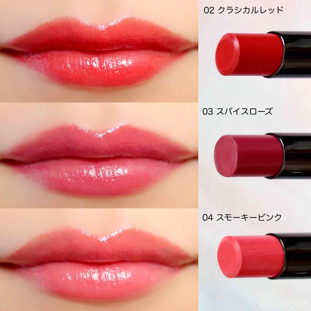 コメント失礼しますm(*_ _)m 04番持ってます。使い心地がよくて、02と03を検討していますが、発色が良すぎて唇が浮かない心配です…… 実際付けて後、顔全体で見るとどうですか?意外と馴染みますか? (私もブルベ夏です)