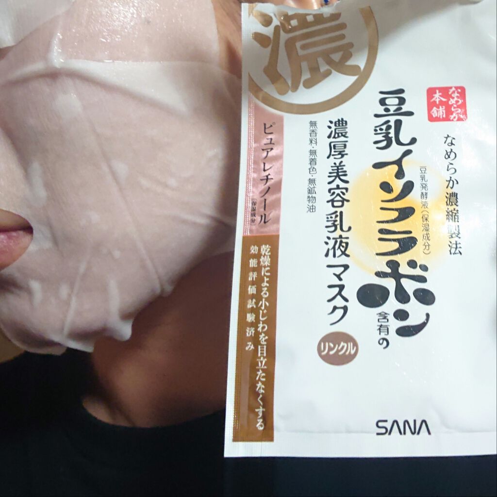 肌もっちりぷるぷる 《なめらか本舗》豆乳イソフラボンリンクルシートマスクN 20枚入り 大容量でとても使いやすかったパックです。ほどよい厚さのシートで5分~10分のお手軽マスク。 ピュアレチノール入りなので主に寝る前に使用していました。