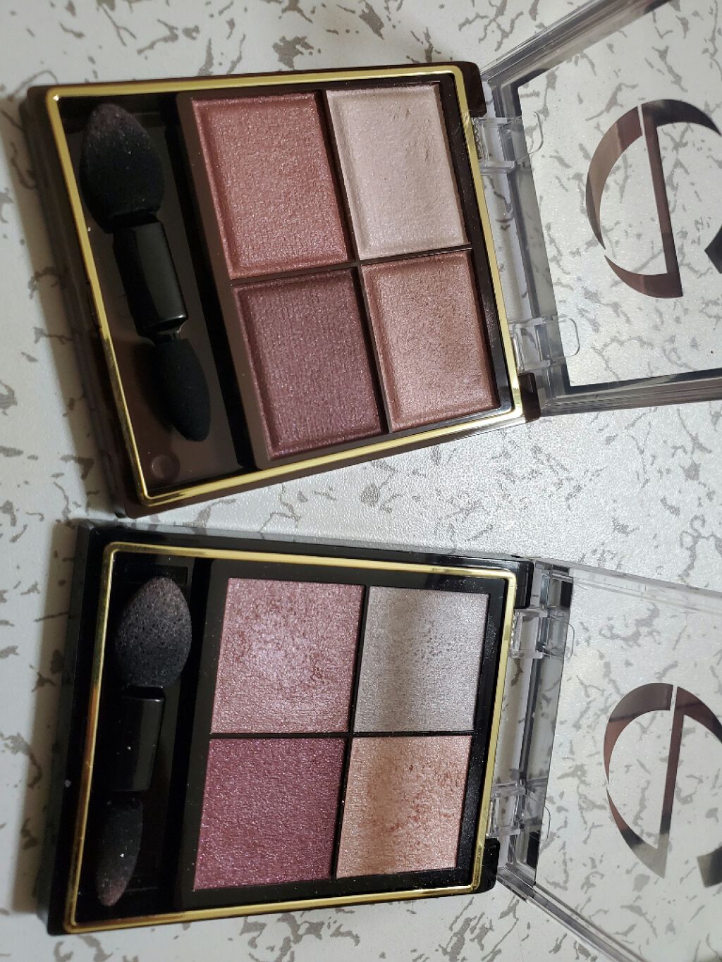 パープルの方が全体的に青みが強くて、濃さもあって、ベージュのところがラメ入りなんです。 色素濃い系、黒髪、ウィンターのわい、優勝。 この色味、濃いんだけどパープル味あるので、透明感も出るスッキリ眉が描けます。 ベージュはラメ入りでツヤが出るのでぼかしたり 眉下のハイライトに入れると上品な眉になります。 ガッツリ青み系のアイメイクをすることが多いので、わたしはパープルの方がしっくりきてます。 ただ、眉に乗せるとフィットするんですけど、パレットで取った時にちょっと粉飛びするのと、蓋が壊れやすいので注意が必要です。 このお値段でこの色味と質感だったら普通に家宝にしますけどね。 とりあえず今のところ眉毛はヴィセさんが一番好きです。(媚び)