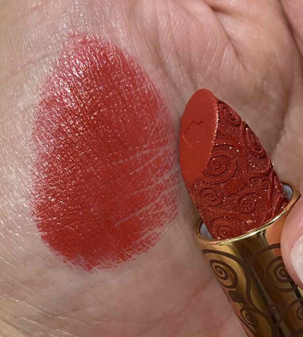 CARSLANリップスティックのクリムトシリーズ。カラーは#20クリムトの代表作『生命の樹』をモチーフにしたというリップ。彫刻のような繊細なデザインも豪華なパッケージも何もかも可愛い。ザクザクのラメが入っていて、ピンク味も感じられるオレンジレ...