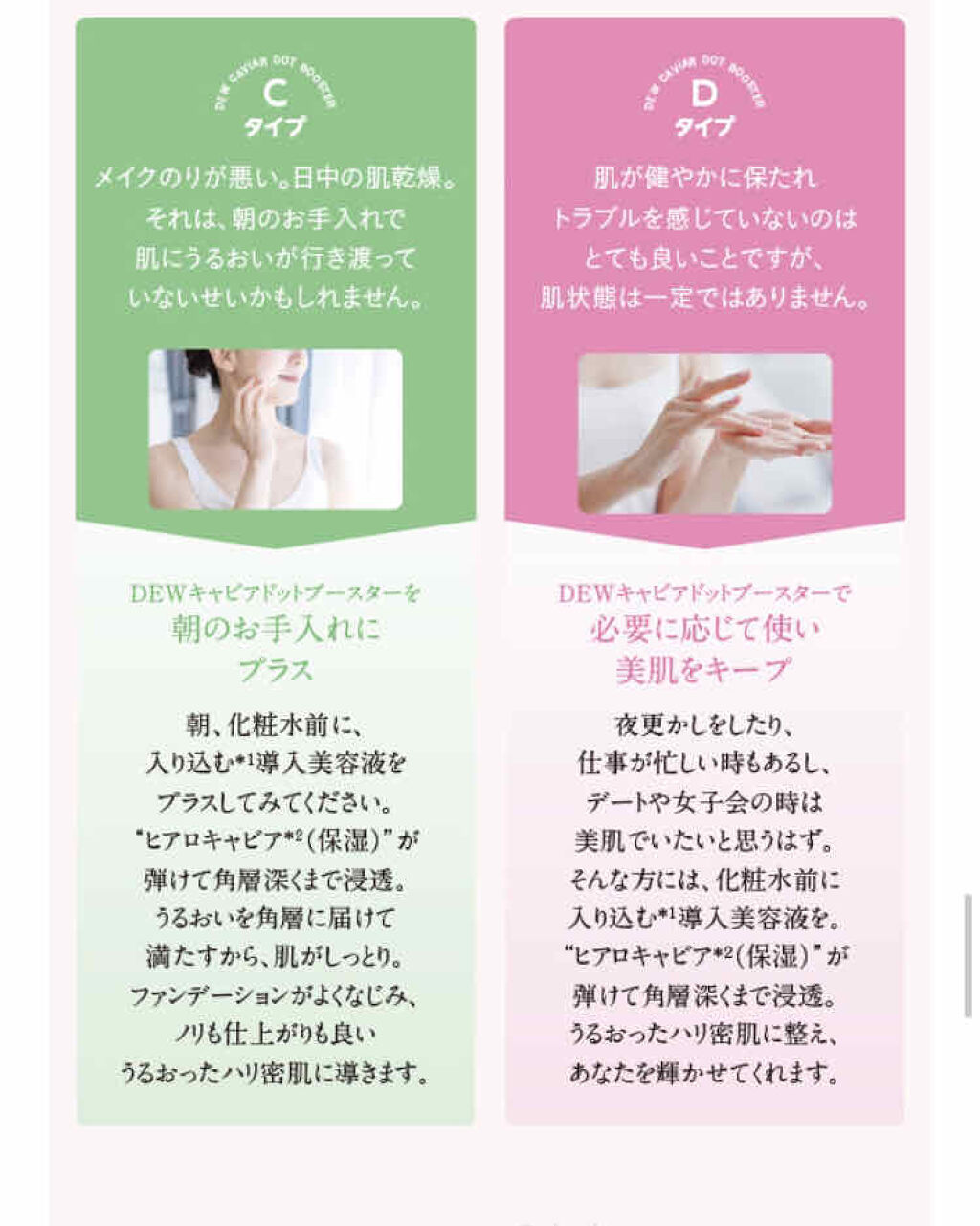 - <DEW キャビアドットブースター> マイカ、シリカ、水、酸化チタン、BG、グリセリン、ソルビトール、ヒアルロン酸Na、加水分解ヒアルロン酸、カルボマー、水酸化K、フェノキシエタノール、香料、酸化鉄、エタノール、メトキシケイヒ酸エチルヘキシル、カンテン、DPG、PEG-60水添ヒマシ油、EDTA-2Na、カラギーナン、PEG-11メチルエーテルジメチコン、アセチルグルコサミン、メチルセリン、ワレモコウエキス <ルビーカラーボトル> 香料、ワレモコウエキス、メチルセリン、アセチルグルコサミン、PEG-11メチルエーテルジメチコン、カラギーナン、EDTA-2Na、PEG-60水添ヒマシ油、DPG、カンテン、メトキシケイヒ酸エチルヘキシル、エタノール、酸化鉄、フェノキシエタノール、水酸化K、カルボマー、加水分解ヒアルロン酸、ヒアルロン酸Na、ソルビトール、グリセリン、BG、酸化チタン、水、シリカ、マイカ <ローズクォーツカラーボトル> ワレモコウエキス、マイカ、シリカ、水、酸化チタン、BG、グリセリン、ソルビトール、ヒアルロン酸Na、加水分解ヒアルロン酸、カルボマー、水酸化K、フェノキシエタノール、酸化鉄、エタノール、メトキシケイヒ酸エチルヘキシル、カンテン、DPG、PEG-60水添ヒマシ油、EDTA-2Na、カラギーナン、PEG-11メチルエーテルジメチコン、アセチルグルコサミン、メチルセリン、香料 <アメジストカラーボトル> 香料、ワレモコウエキス、メチルセリン、アセチルグルコサミン、PEG-11メチルエーテルジメチコン、カラギーナン、EDTA-2Na、PEG-60水添ヒマシ油、DPG、カンテン、メトキシケイヒ酸エチルヘキシル、エタノール、酸化鉄、フェノキシエタノール、水酸化K、カルボマー、加水分解ヒアルロン酸、ヒアルロン酸Na、ソルビトール、グリセリン、BG、酸化チタン、水、シリカ、マイカ <ペリドットカラーボトル> 香料、マイカ、シリカ、水、酸化チタン、BG、グリセリン、ソルビトール、ヒアルロン酸Na、加水分解ヒアルロン酸、カルボマー、水酸化K、フェノキシエタノール、酸化鉄、エタノール、メトキシケイヒ酸エチルヘキシル、カンテン、DPG、PEG-60水添ヒマシ油、EDTA-2Na、カラギーナン、PEG-11メチルエーテルジメチコン、アセチルグルコサミン、メチルセリン、ワレモコウエキス