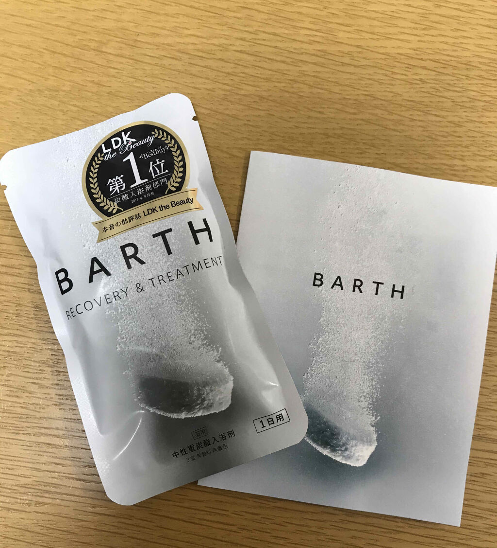 - 【医薬部外品】 ポイント① 溶け込む重炭酸イオン BARTH は独自の製造技術で、重曹とクエン酸の反応を科学的に計算されたタイミングで安定化させ、お湯を中性に保つことで 、重炭酸イオンの 8 ~ 9 割を湯中に溶け込ませることに成功しました。重炭酸イオンがしっかり溶け込んだお湯に入浴することで、有効成分が血流を促進し、疲労回復を促します。 ポイント② 自然由来のクエン酸 BARTHは、炭酸ガスを発生させるための酸を石油合成ではなく、自然生成物(でんぷん)の発酵で得られるクエン酸を使用しています。従来クエン酸は反応性が高くすぐに揮発してしまうため、重曹と配合して錠剤にすることが極めて困難だと言われてきました。 自然由来のクエン酸と炭酸ガスの組み合わせが、お肌のキメを整え柔らかくし、美肌効果をもたらします。 ポイント③塩素を中和するビタミンC配合 ビタミンCを配合したことで、一般家庭で使われる水道水の中に含まれている塩素を中和し、刺激の少ない肌触りのよいお湯を可能にしました。 敏感肌の方や、お子様にも安心してご入浴いただけます。 ポイント④無着色・無香料 着色料や香料などを一切使用せず、余計なものを削ぎ落としました。