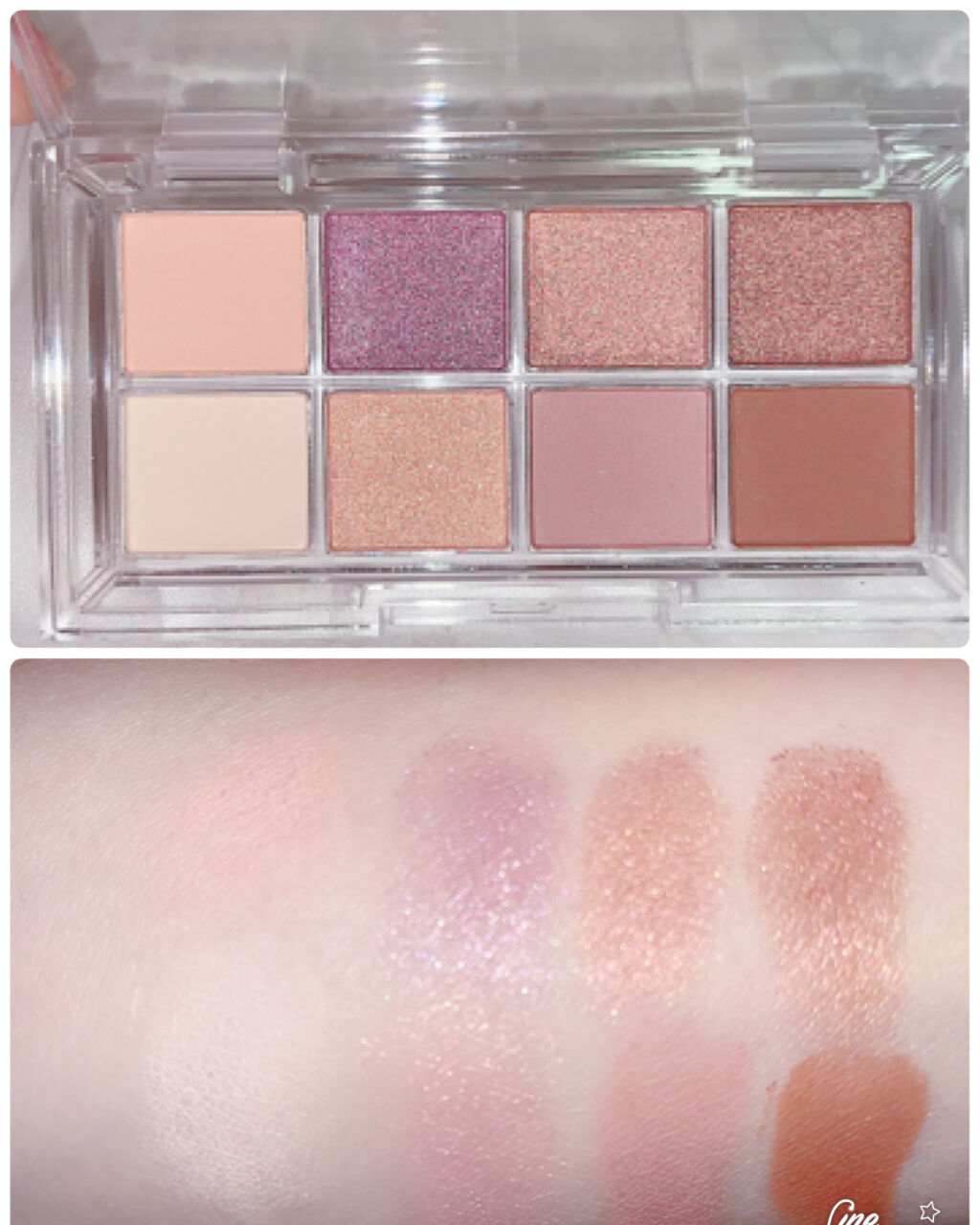 ミルクラテはラメがめっちゃ綺麗✨️ 透明感のある目元が作れるよ😊💓 ダスティローズが可愛いヴィンテージローズは発色もよく華やかなメイクが出来るよ🌹 コンパクトなサイズで持ち運びにも便利🥰