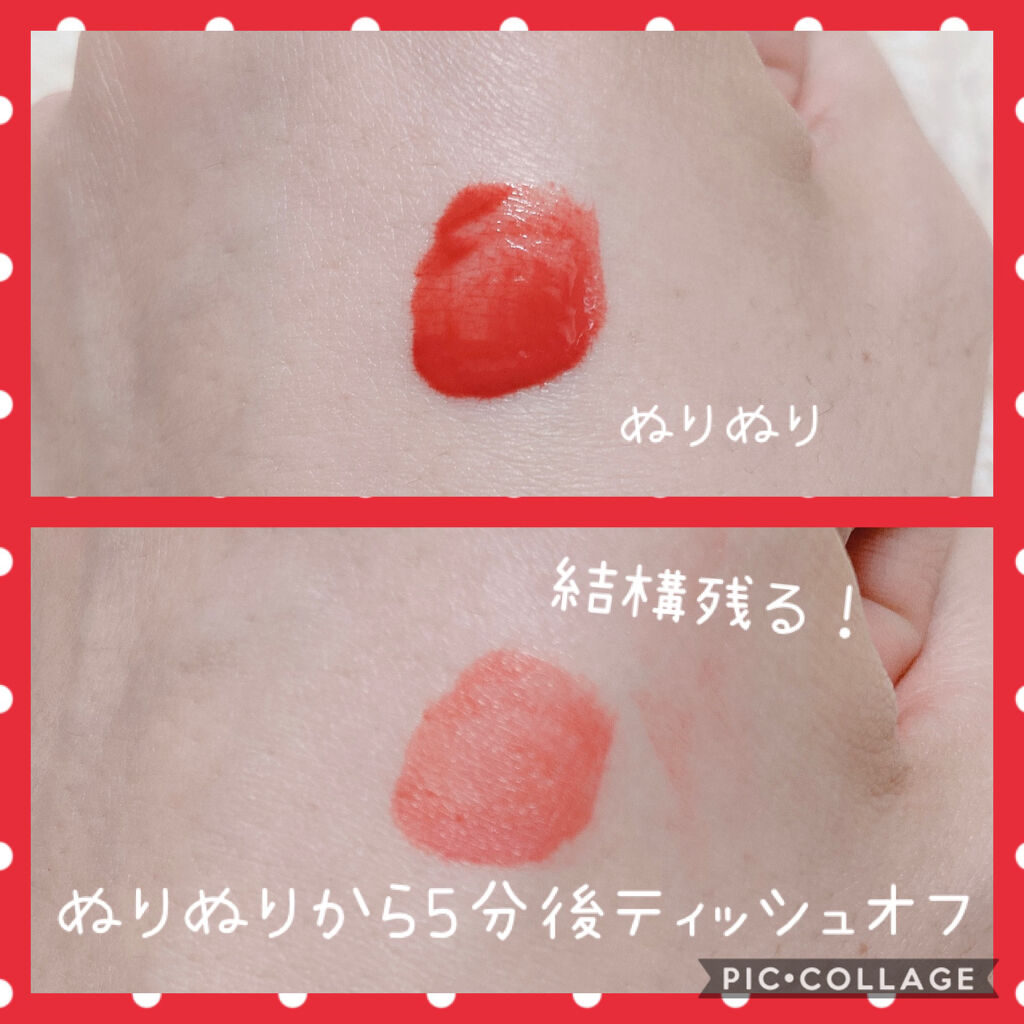 | 口紅・グロス・リップライナーランキング第120位 | 潤いが長続きします! 透け色ですが、重ねればパキッと仕上がるので調整しやすいティントだと思います!! | 詳細を見る |
