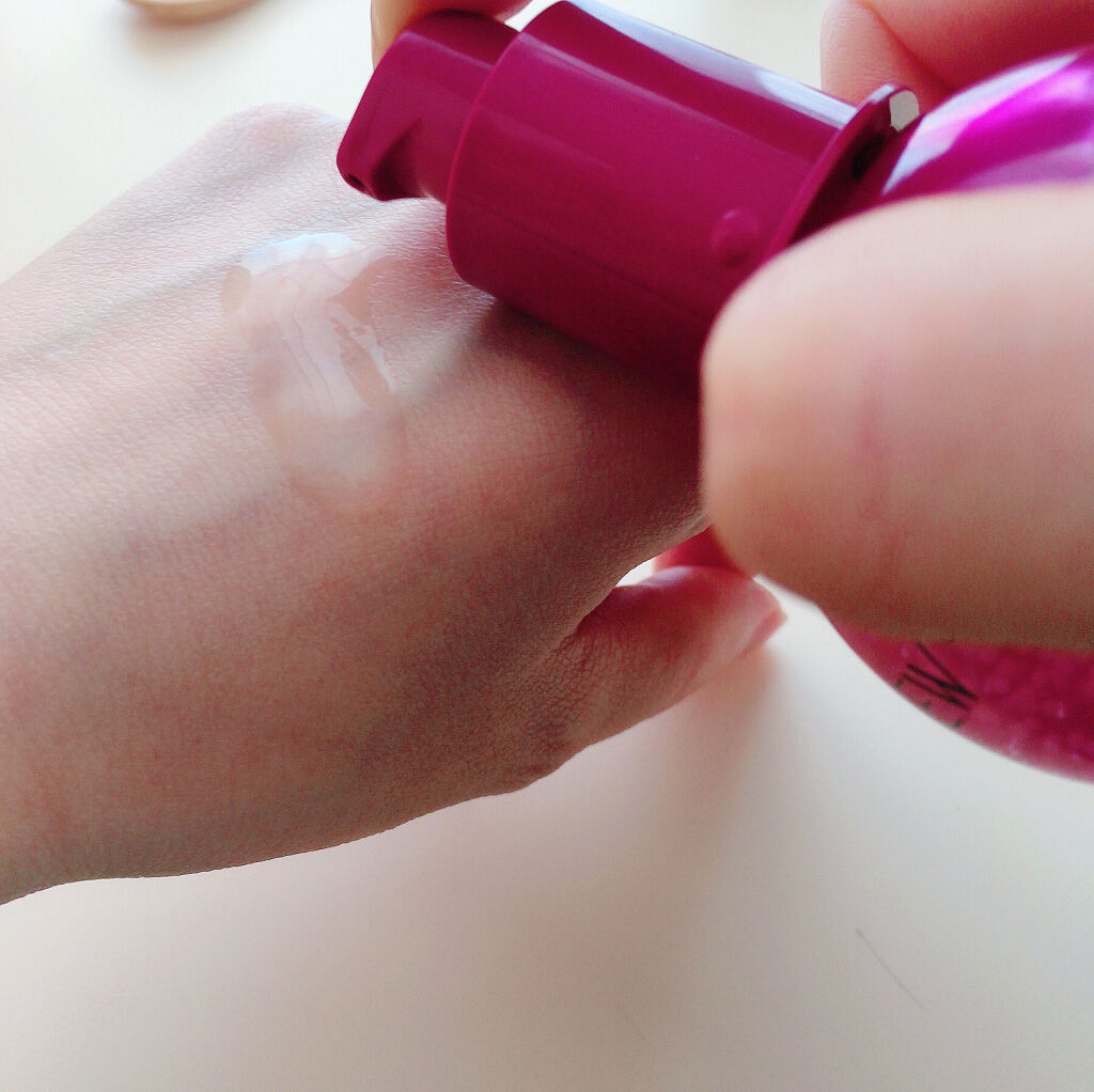 汗・皮脂・乾燥・こすれ・高温多湿にも強く、二次付着レスだそうで、重ねてもムラにならず、毛穴・赤味・色ムラ・シミ・凸凹などの悩みを瞬時に薄膜カバーし、うるおいをはらんだ、端正なセミマット肌を叶えてくれるとの事。 みずみずしい滑らかなテクスチャーで、伸びが良く、潤い感は感じられるのにファンデを載せた後べたつき感はありません。 セミマットな質感で程よいツヤを残してくれて、お肌の色ムラや毛穴をカバーしてくれて、すごくきれいなお肌に整えてくれます♪