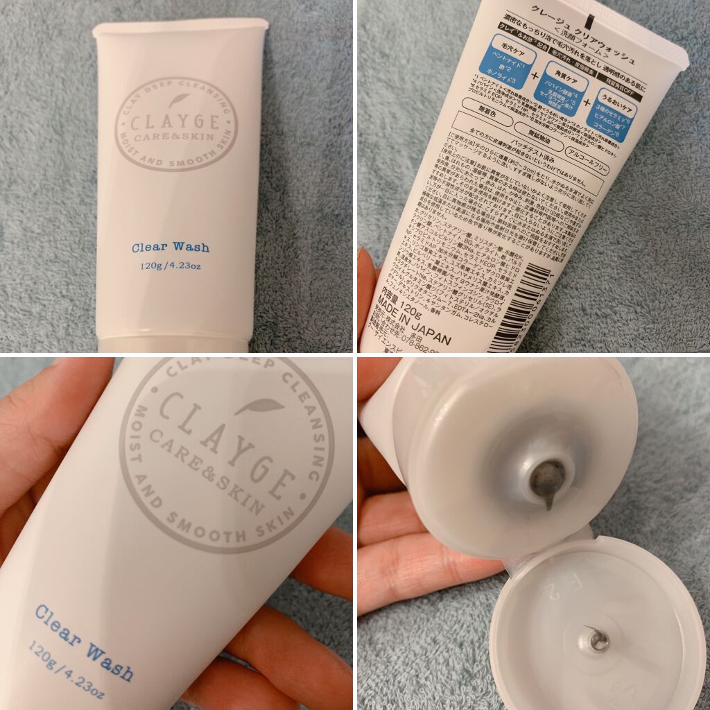CLAYGEクリアウォッシュ【使った商品】クレージュクリアウォッシュ【商品の特徴】¥1,100円(税込)120g天然クレイ×お酢配合パパイン酵素機能性の異なる2種のクレイお酢成分3種のヒト型セラミドビタミンC誘導体配合合成着色料鉱物油紫外線吸...