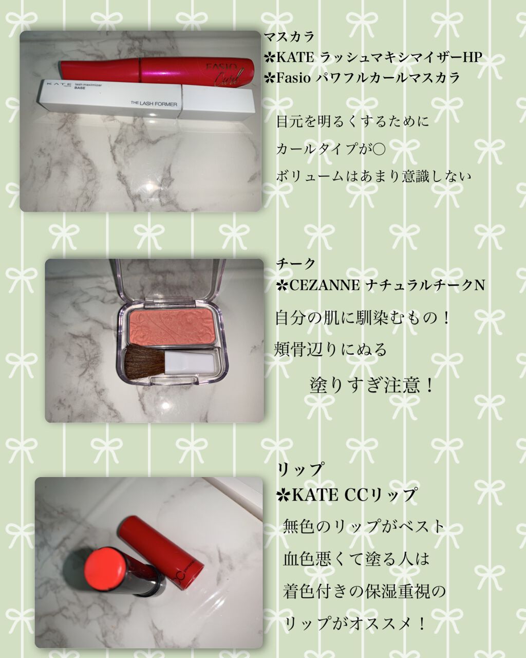 使うものは多いのですが、色合いが良かったし盛れるしなによりほぼ落ちずに1日持ってくれました。 まつ毛は今回4種類と多めですが使い分けてみました 下まつげはどうしても存在感が欲しいのでKATEを使いました! アイライナーなんですけど私はKATEのリキッドとINTEGRATEの廃盤になってしまったのですがアイライナーペンシルを使いました。 まつ毛は前回紹介した下地を使いました。ビューラーをドライヤーで少し温めてから使って30秒くらい放置してから下地塗ったらずっとまつ毛上がっててくれました。最高っす👍 CANMAKEのラメはアウトレットコスメで200円くらいで買えたのですが、この色は廃盤になってしまったんですね😭すごく綺麗な色なのに…… 最近はすごくツヤッツヤにハマってるのでラメ有りのアイシャドウを選びました。 髪が結構短いので、気持ち強めな感じを出したくてアイラインははね上げましたがタレ目でも全然可愛いと思います。