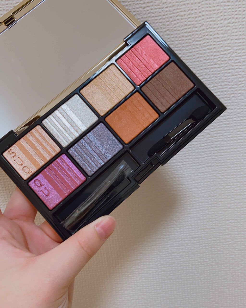 開いた瞬間びっくり、全色キラキラ。締め色に至るまで、本当に全色。さすがホリデー💫🤍 私の推しは左上!公式の写真でラベンダーと思っていたら、淡いラベンダーベースにゴールドラメ! 全色使うと、深みが出てかなり大人っぽい仕上がりに。落ち着いた大人のピンクメイクに。