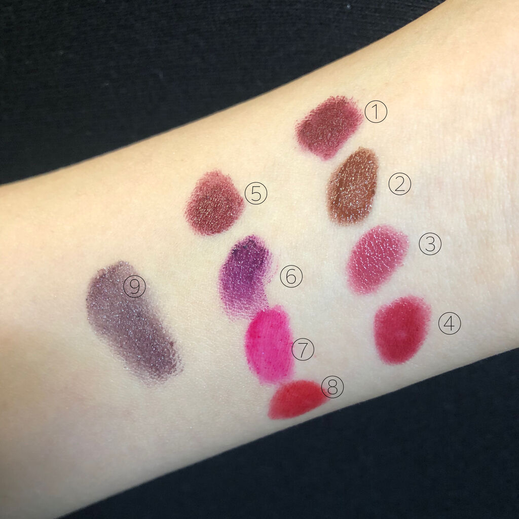 ブルベ冬向けリップスティック達💄🖤①【Diorウルトラルージュ】 883少しブラウンぽいダークな赤。マットな為がっつり発色しますがめちゃめちゃかっこいいです🖤保湿して薄めに塗ると若干紫系に見えます。落ちづらいです✌🏻②【M.A.Cラブミーリッ...