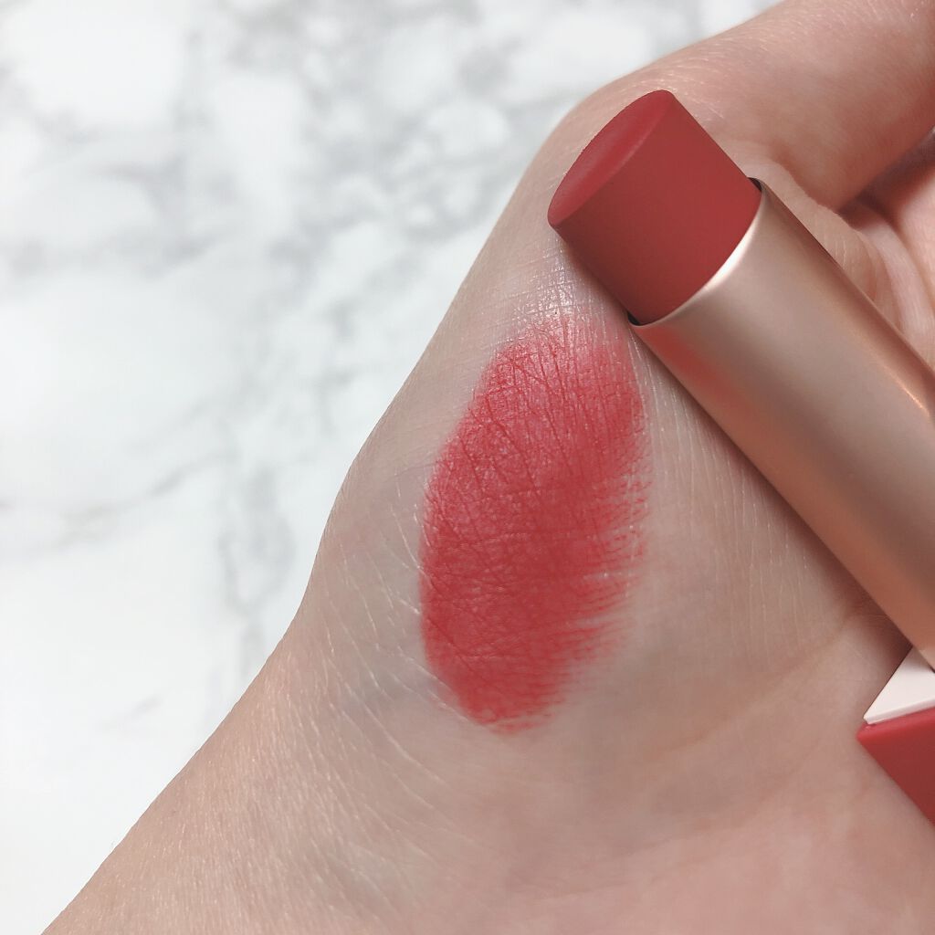 しっとりしたグロウテクスチャーが生気ある唇を演出してくれるリップスティック💄 自然由来の保湿オイルが唇をしっとりとケアし栄養を与えてくれます✨ しっかりしたテクスチャーなのに唇にのせるととろけてリップクリーム感覚でするすると塗れます! 重ね塗りしても重くならない、水分感たっぷりのツヤのあるぷるんとした唇に💋 リップスティックなので色持ちはそこまでかなぁ〜っと思ってましたが、ティントかな?と思うくらいティッシュオフしてもほんのり色味が残ってくれました♡