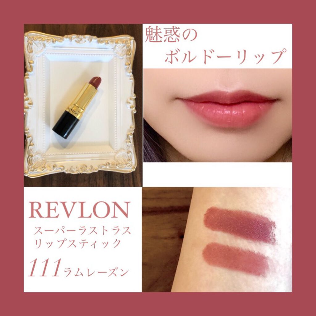 REVLONスーパーラストラスリップスティック111ラムレーズン📷4枚目にスウォッチ/5枚目に着画あり⋱⋰⋱⋰⋱⋰⋱⋰⋱⋰⋱⋰⋱⋰⋱⋰⋱⋰⋱⋰⋱⋰このリップはSNSでレビューを見かけて可愛くて即購入した記憶𓂃𓈒過去にレビューしていますが、(h...