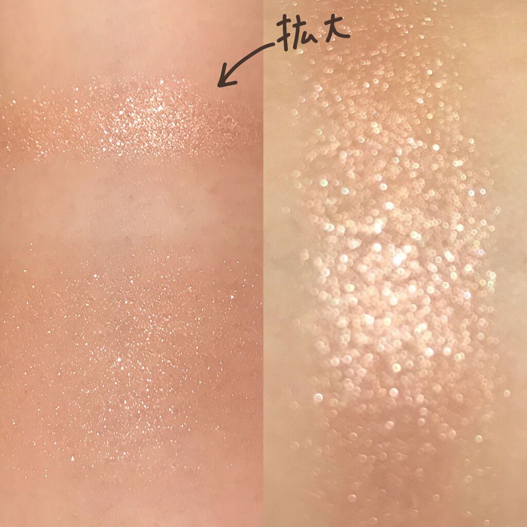 - 思いのままにカスタムできる 大粒ラメがきらめくアイシャドウ ○輝度の高い大粒ラメが密着しラメ落ちしないから、瞳全体輝きを増してより華やかな印象が続く -フローティングベース処方 ○ラメがチラチラ浮いているように輝き、華やかに、そして立体感のある目もとへ。 【色調】 〈フローティング:大粒ラメがチラチラ浮いているように見える仕上がり〉