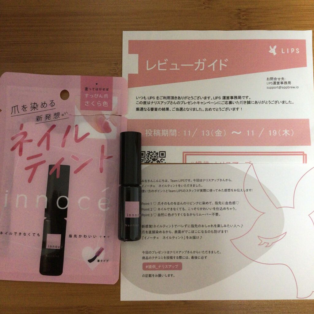 - \新発想/爪を染める【イノーチェ ネイルティント】デビュー! 爪そのものをほんのりピンクに染めて、指先に血色感♡ ネイルできなくても、こっそりかわいいを仕込めちゃう。 ●塗ってはがすフィルムタイプ。水分に反応して自分色に染まります。 ●好みに合わせて濃さ&色持ち調整可能。 ●自然に色がうすくなるからリムーバー不要。 ●ネイル美容液成分配合(保湿:アボカド油・ホホバ種子油/補修:シルク*1・ケラチン*2) ●マニキュアによる爪へのダメージが気になる方にもオススメ。 ネイルをあきらめている方、ぜひお試しください♪ (*1 加水分解シルク、*2 加水分解ケラチン(羊毛))