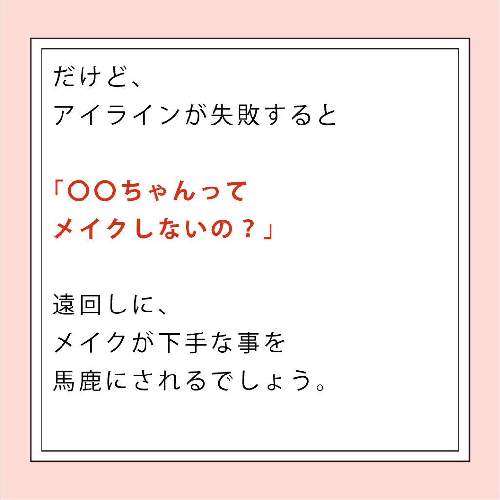 一重メイクを始めたばかりの頃、一番よくわからなかったのがアイライナーの引き方! あれはNGとかこれが正しいとかネットで検索すると色々出てきますが、同じ一重だって瞼の厚みはそれぞれ、切れ長な方もいれば丸目の方もいるのに、すべてのひとに当てはまる絶対的な「正解」や「不正解」なんてあるワケがない!!! 理想の引き方を見つけた今でも、メイクの雰囲気に合わせて引き方を変えたりするし、メイクて「こうしないといけない」みたいなルールなんてないんですよね。