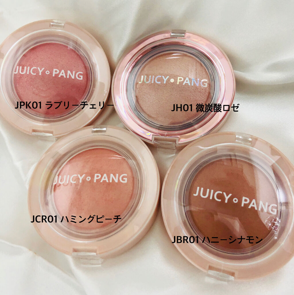 A’pieuジューシーパンジェリーチークジューシーパン ジェリービームハイライター日本限定色✨指にとるとプニっとした触感...でもつけるとサラサラでちゃんと密着します!なんだか不思議な触感です🥰色はどれも控えめでパールが入ってるのでこれ1個で...
