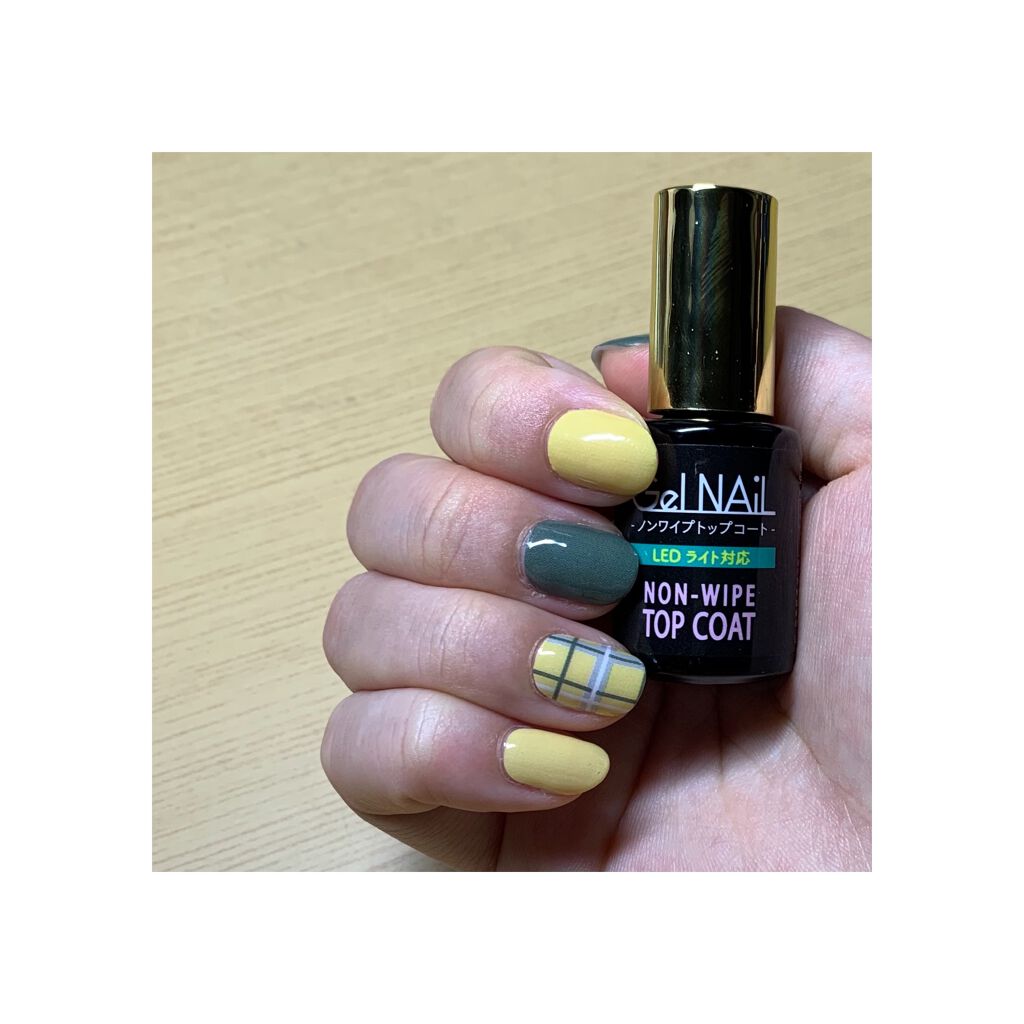 セリアジェルネイル使用色:マスタード2度塗りの状態です気持ち濃いめに塗ったのでほぼマットな発色になりましたが結構透け感もあるカラーなので薄めに塗ると2度塗りでも若干透けます少し黄土色に近い黄色でショートネイルやフットネイルに合いそうベースには...
