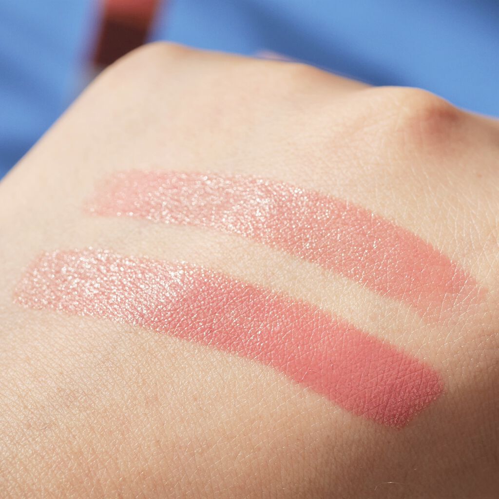 唇に溶けこむようにフィットする生体類似成分“リン脂質”やエモリエントオイル配合。 うるおい成分を抱えて高い保湿効果を持続する「ハイドロステイカプセル」、つけたての彩りや艶、なめらかさを持続させる「カラーホールドカプセル」も配合されている。 香水をイメージしたというパケがすごく素敵✨ リップも先がぷっくり丸くなっていてツヤっと可愛い。 Shine(高ツヤ) みずみずしく軽やかなつけ心地。 Glow(ツヤ) とろけるようになめらかなつけ心地。 Satin(セミツヤ) 濃密でクリーミーなつけ心地。 Velvet(セミマット) ふんわりと軽くほぐれるようなつけ心地。 Matte(マット) やわらかくなめらかなつけ心地。 26 brandyは、する~っとなめらかに塗れて、濡れたようなツヤ。 36 my theoryは、はっきり色づくのに、こちらも塗りやすい。 特にStainタイプは、ティッシュオフしても色がしっかり残っていて、持ちも良かった。