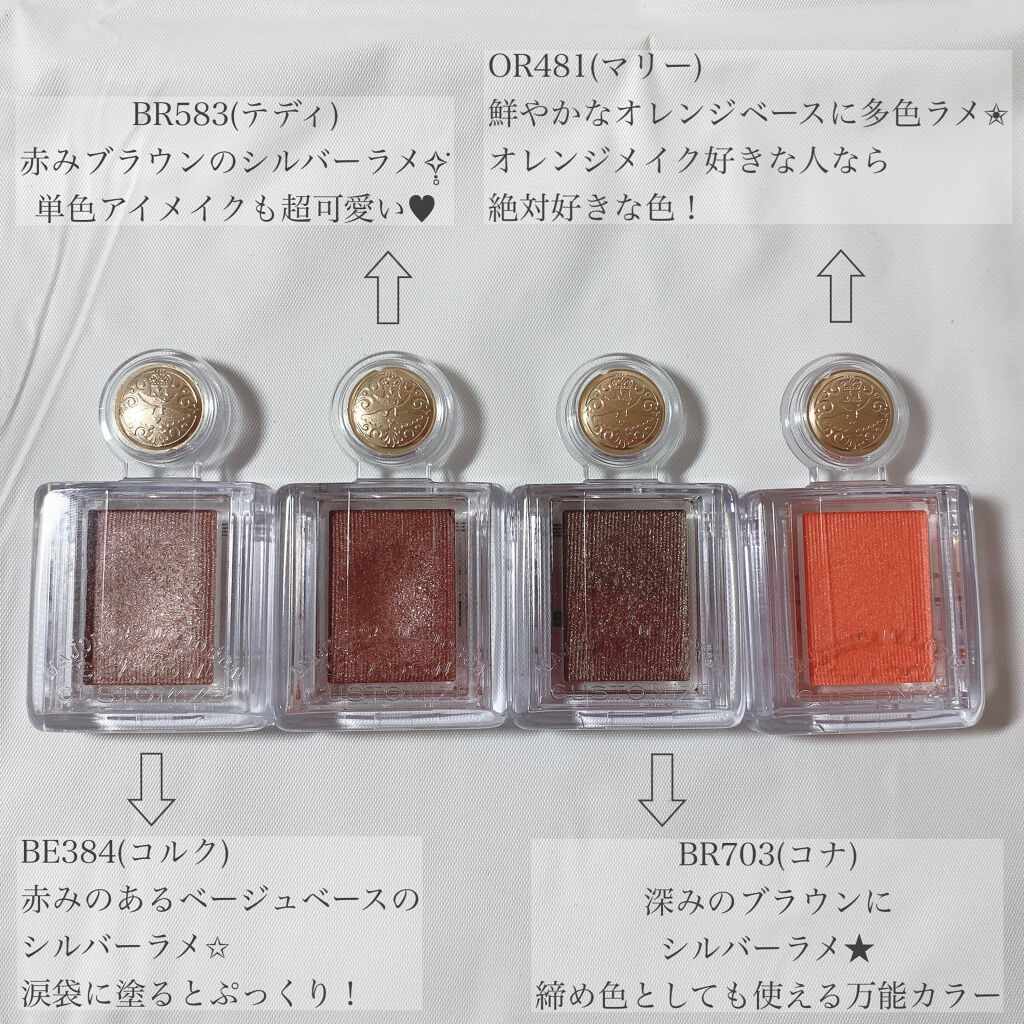| 単色アイシャドウランキング第10位 | 小さくて持ち運びやすい!粉質も良くて使いやすいカラーから、珍しいカラーまで沢山バリエーションがある | 詳細を見る | |