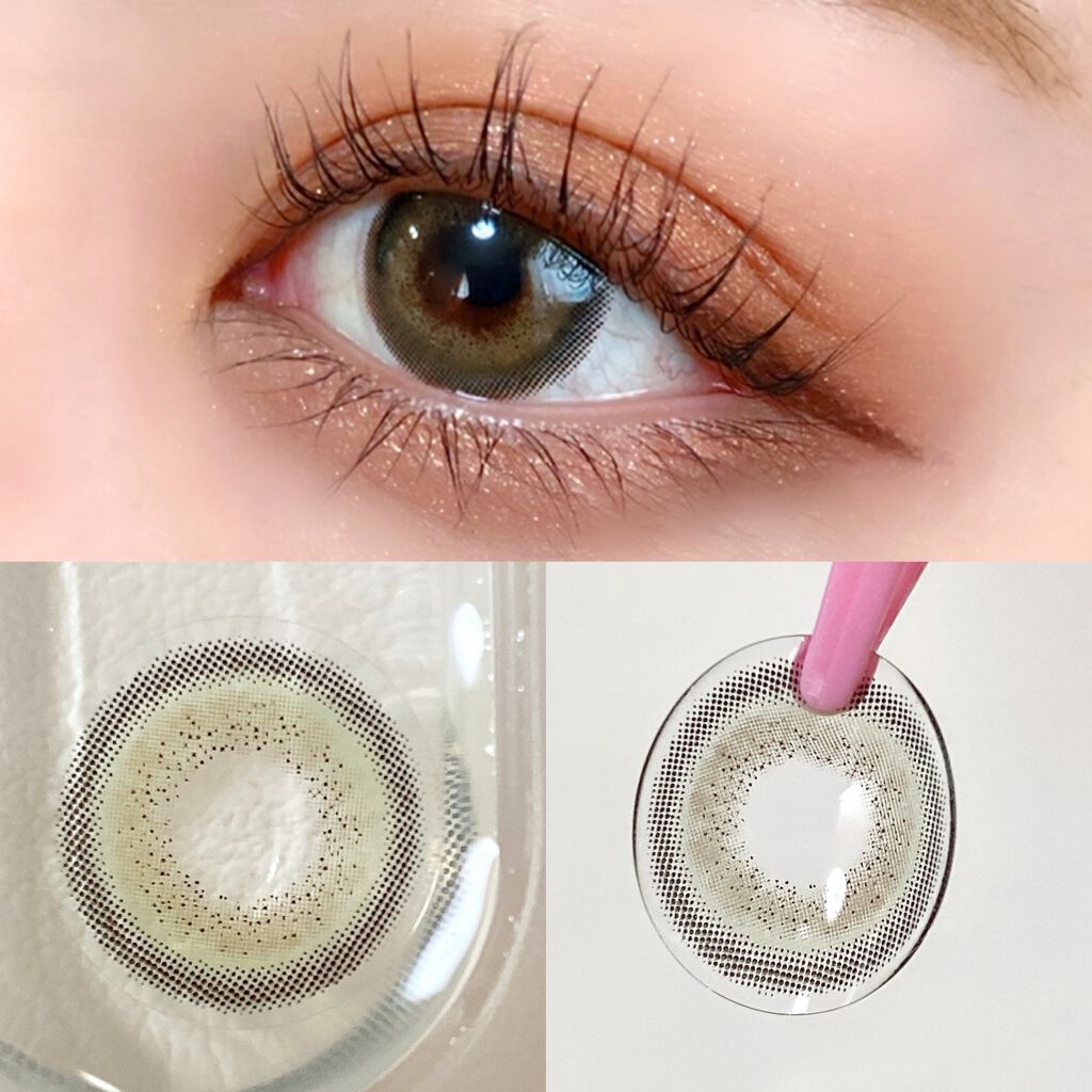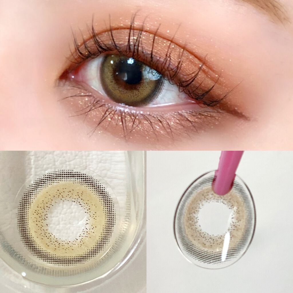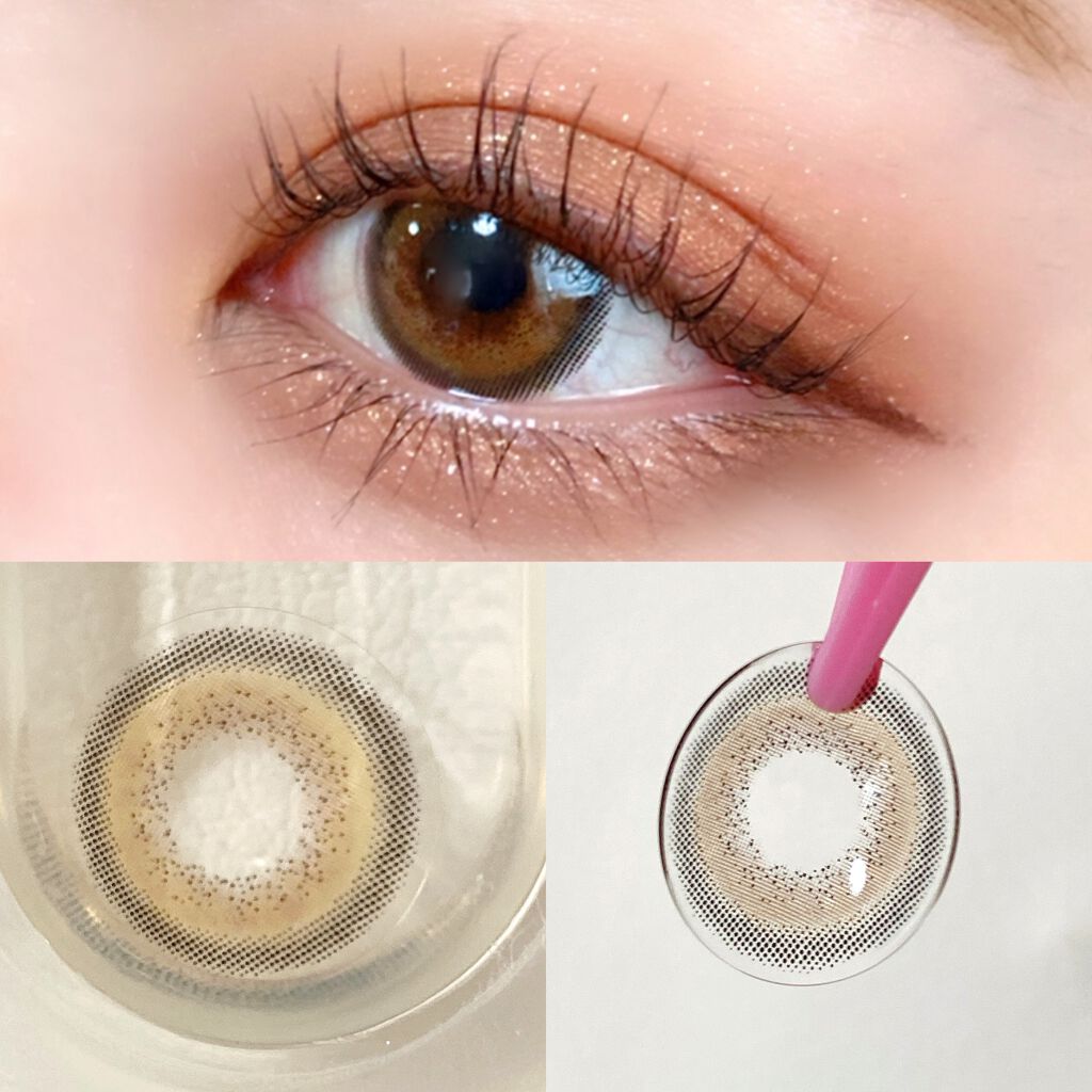 細フチと自然なブラウンでナチュラルに盛れる!ちゅるん裸眼風レンズ✨ 着色直径が13.0mmと自然かつブラウンカラーも瞳に馴染む絶妙ブラウンがとっても使いやすい💫 どんな瞳に合いやすい自然で透け感のあるブラウンカラー。若干カーキっぽさもあるブラウンだから色素薄い感じになる✨ ダークブラウンとイエローが綺麗な水光レンズ✨✨ 13.0mmと自然な着色直径と細めぼかしフチが絶妙でハイライトが入ってるからちゅるんとした瞳に見えるところも好き🫧