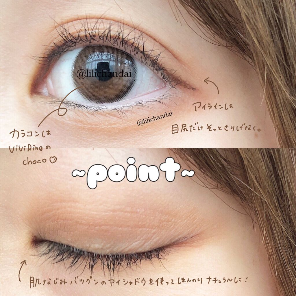 チョコレートシーズンにぴったりなきゅるきゅるブラウンカラコン🥺 縁もふんわりとぼかされていて色も色素薄い系のため裸眼に馴染みやすいです! ぜひチェックしてみてください🫶 OLENSのViVi Ring 1day チョコ ¥1,760