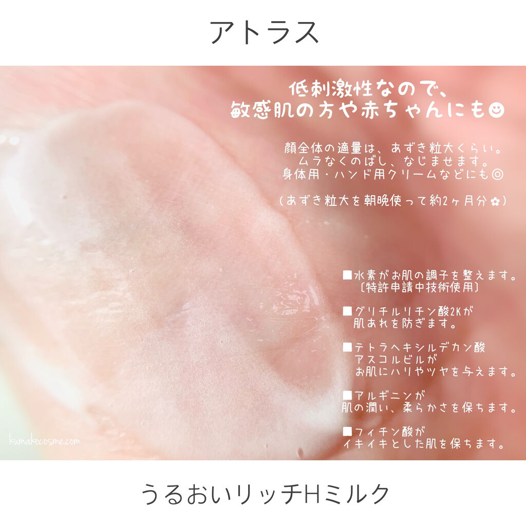 肌の専門家が4年かけて作った、「高濃度水素乳液」うるおいリッチHミルクをお試しさせていただきました♡高濃度水素乳液って、どんなもの?✔️【水素】お肌の調子を整える✔️【グリチルリチン酸2K】肌あれを防ぐ✔️【テトラヘキシルデカン酸アスコルビル...