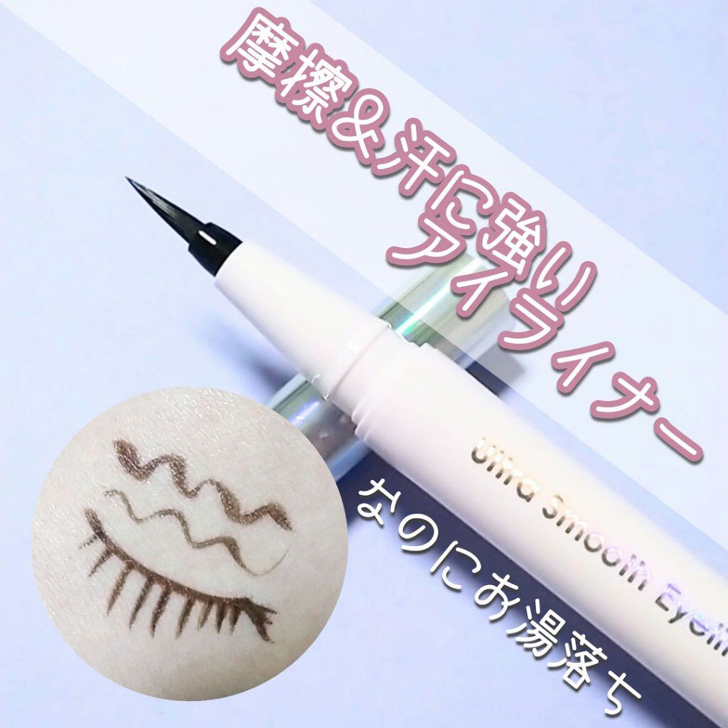 マットなブラックカラー 0.1mmラインの極細ブラシ、防水フィルム膜、Mask-proofで発色長持ち 私が大好きなクッキリブラック🖤 マットな仕上がりで、光のあたり加減で色が飛んで見えちゃうことがないのが、一重の私にはありがたい◎ ウォータープルーフ&擦れに強いそう!擦れ耐性が気になったから、実際に擦ってみました。