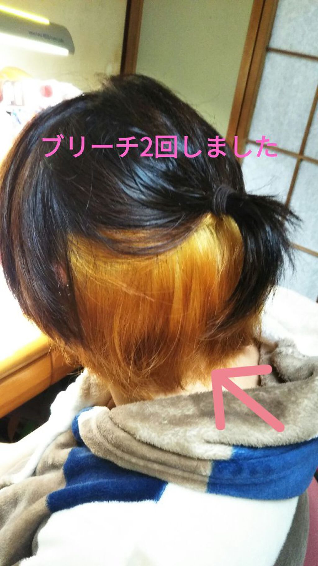 夏のはじめ頃に念願のブリーチをしました〜私の髪質は光に当たるとほんのちょっっっっっとだけ茶色く見えるかな〜?くらいの黒髪に、癖があり、傷みは少ないけど太くて硬い髪質です…コンプレックス!ブリーチして髪の毛を殺したいんだよ〜…(つ﹏⊂)縮毛矯正...