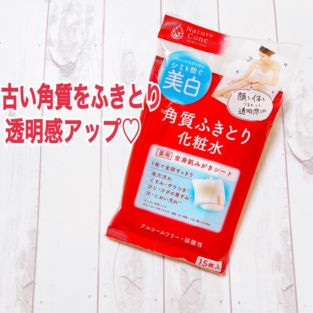 - \いつでもどこでも、顔も体もまるごと美白*&角質ケアできる「ネイチャーコンク」の全身肌みがきシート新登場!!/ ◆素肌を磨き上げる薬用全身美白シート。古い角質をふきとることで、透明感がアップ。 ●ふきとり化粧水をたっぷり含んだ柔らかい3層構造のシートが、古い角質をすっきり取り除き、顔も身体もうるつる肌に導きます。 ●くすみや乾燥の原因となる余分な古い角質や毛穴汚れだけでなく、においの元おとなる汗・汚れ・べたつきなども取り除きます。 ●顔、デコルテなどの全身ケアに。うなじ、腕、脇、背中、脚、デリケートゾーン付近にも。 ●アルコールフリー、無香料、無鉱物油、無タール系色素、弱酸性 <1枚で6役> 美白*、角質除去、朝の洗顔代わり、保湿、肌荒れ防止、浸透アップ <こんな時にオススメ> お風呂後の全身ケア、ジム・ヨガの後、日やけ後の肌に、旅行時のスキンケア、スキンケア時、朝の洗顔代わり、いつもの化粧水代わりにも *美白とは、メラニンの生成を抑え、シミ・ソバカスを防ぐこと