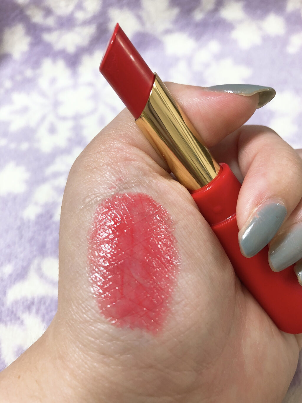 思ったより明るいレッド…可愛いけど私のメイクの色合いには馴染まないかも😨 パッケージから想像するよりもかなりショッキングピンクむしろ助かります とってもオトナな赤紫コレは秋とか冬とかに使いやすそうかも