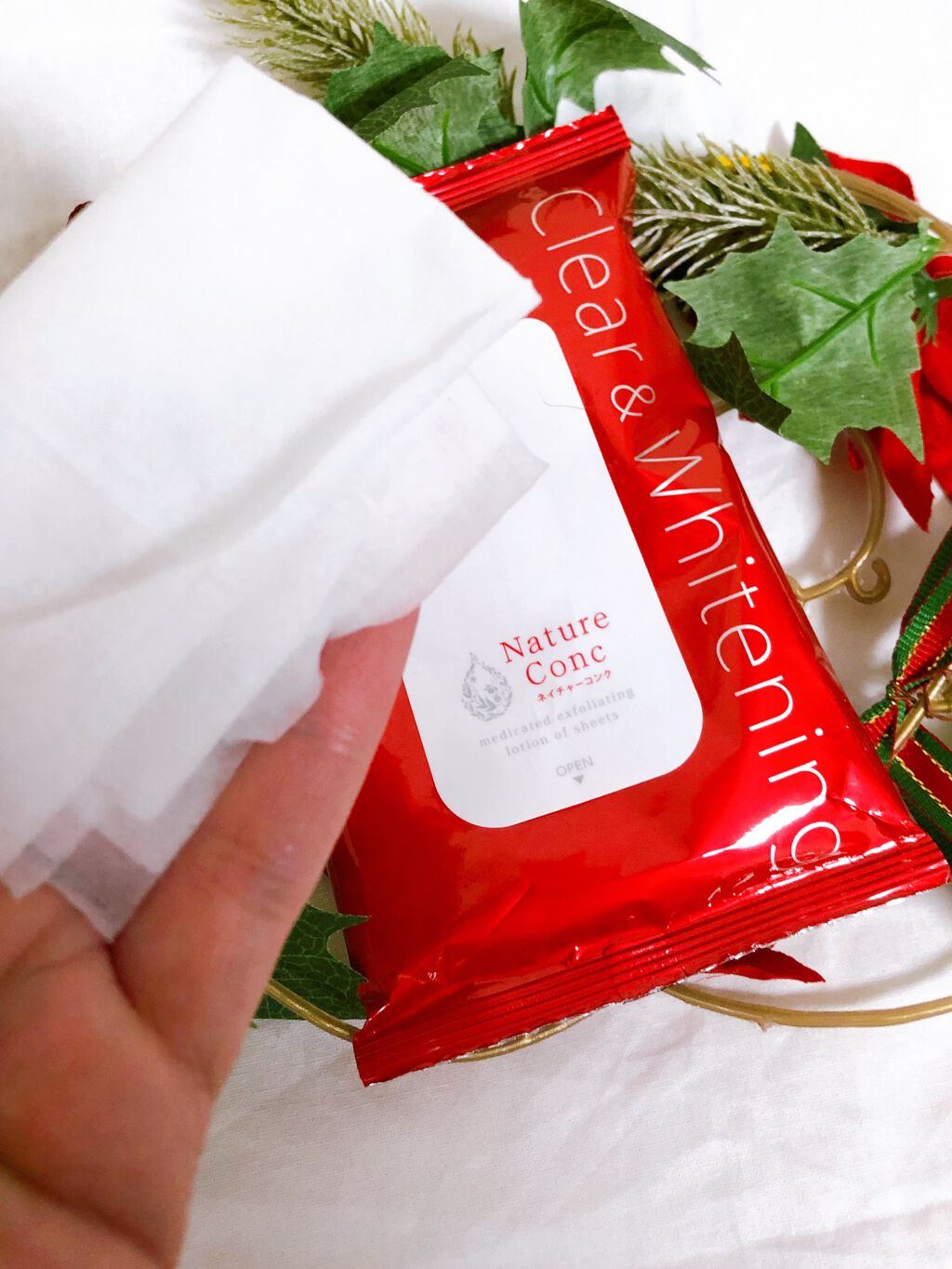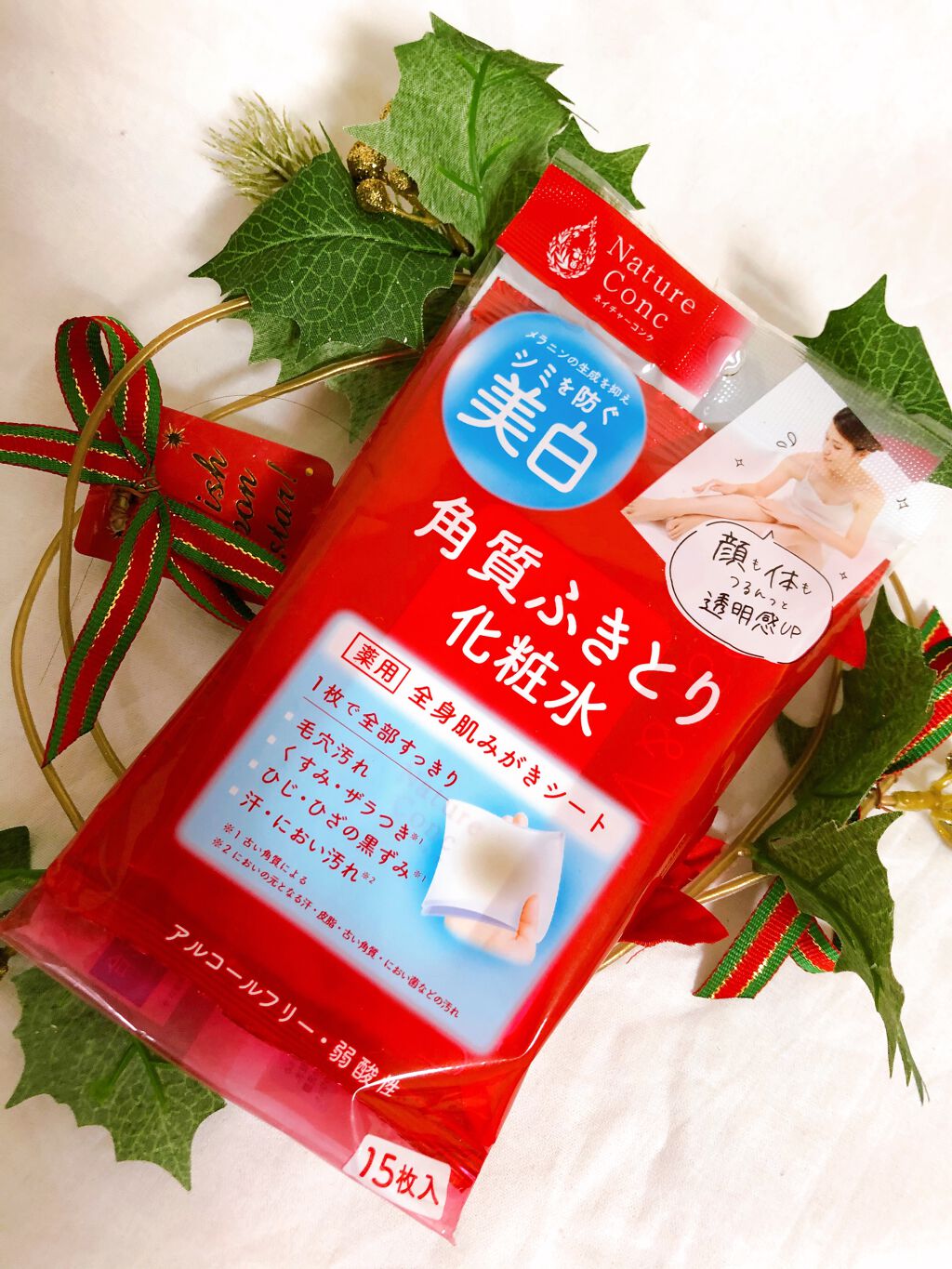 - \いつでもどこでも、顔も体もまるごと美白*&角質ケアできる「ネイチャーコンク」の全身肌みがきシート新登場!!/ ◆素肌を磨き上げる薬用全身美白シート。古い角質をふきとることで、透明感がアップ。 ●ふきとり化粧水をたっぷり含んだ柔らかい3層構造のシートが、古い角質をすっきり取り除き、顔も身体もうるつる肌に導きます。 ●くすみや乾燥の原因となる余分な古い角質や毛穴汚れだけでなく、においの元おとなる汗・汚れ・べたつきなども取り除きます。 ●顔、デコルテなどの全身ケアに。うなじ、腕、脇、背中、脚、デリケートゾーン付近にも。 ●アルコールフリー、無香料、無鉱物油、無タール系色素、弱酸性 <1枚で6役> 美白*、角質除去、朝の洗顔代わり、保湿、肌荒れ防止、浸透アップ <こんな時にオススメ> お風呂後の全身ケア、ジム・ヨガの後、日やけ後の肌に、旅行時のスキンケア、スキンケア時、朝の洗顔代わり、いつもの化粧水代わりにも *美白とは、メラニンの生成を抑え、シミ・ソバカスを防ぐこと