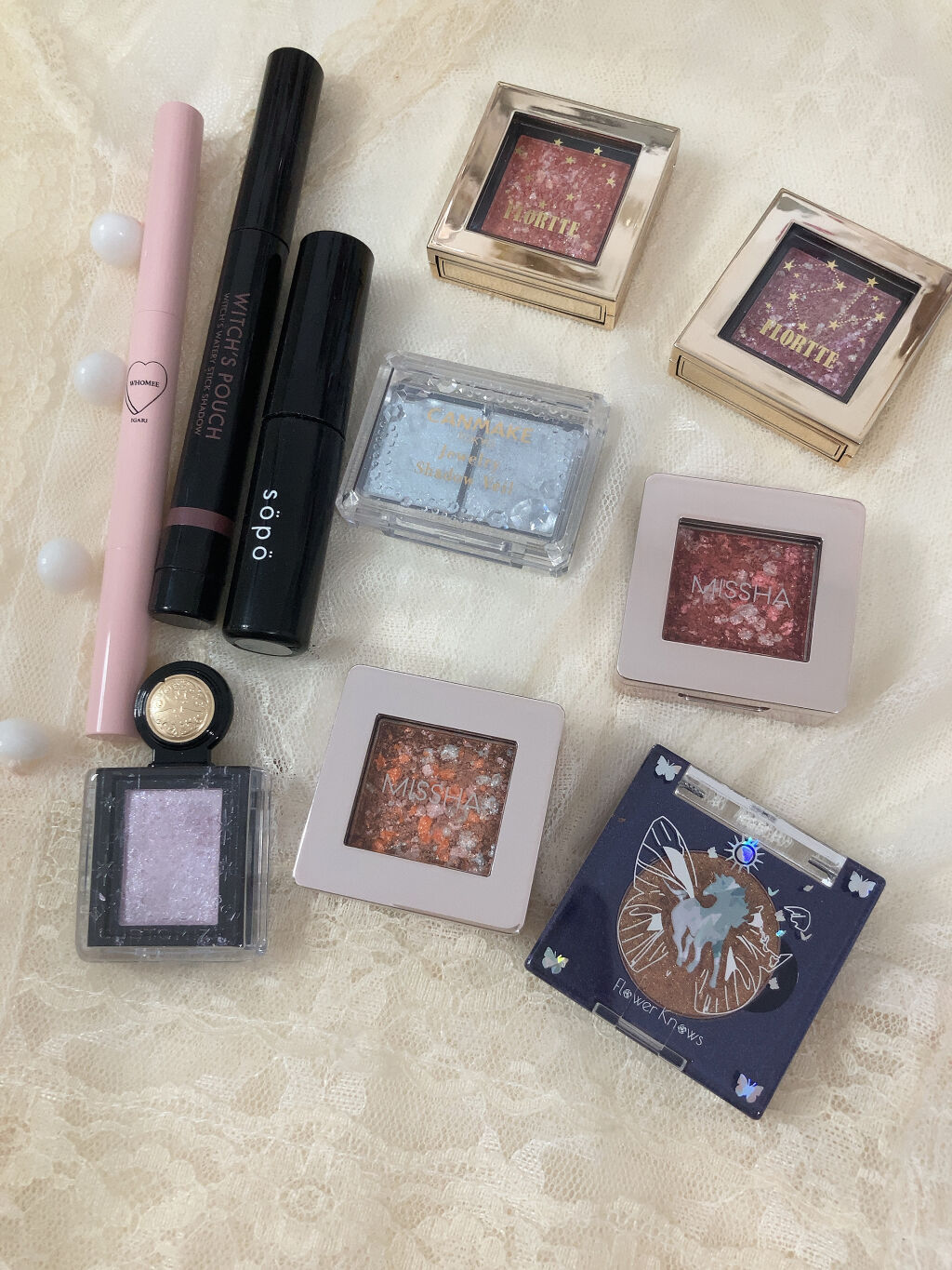 ミシャの二色とも可愛い~!!! 最近気になってて、どの色がいいかなって思ってたんだけどこの二色最高🥺💗 キャンメイクのシャドウもキラキラでほんと可愛い!