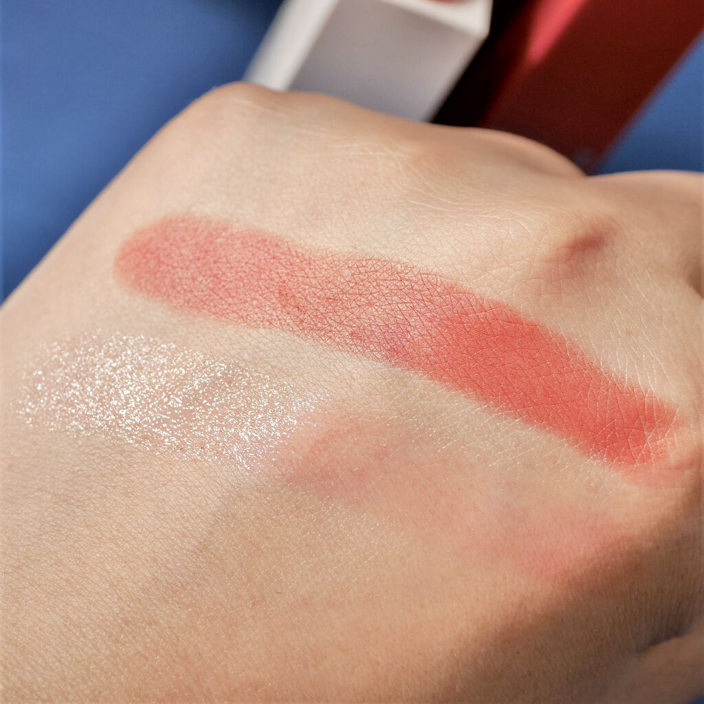 唇に溶けこむようにフィットする生体類似成分“リン脂質”やエモリエントオイル配合。 うるおい成分を抱えて高い保湿効果を持続する「ハイドロステイカプセル」、つけたての彩りや艶、なめらかさを持続させる「カラーホールドカプセル」も配合されている。 香水をイメージしたというパケがすごく素敵✨ リップも先がぷっくり丸くなっていてツヤっと可愛い。 Shine(高ツヤ) みずみずしく軽やかなつけ心地。 Glow(ツヤ) とろけるようになめらかなつけ心地。 Satin(セミツヤ) 濃密でクリーミーなつけ心地。 Velvet(セミマット) ふんわりと軽くほぐれるようなつけ心地。 Matte(マット) やわらかくなめらかなつけ心地。 26 brandyは、する~っとなめらかに塗れて、濡れたようなツヤ。 36 my theoryは、はっきり色づくのに、こちらも塗りやすい。 特にStainタイプは、ティッシュオフしても色がしっかり残っていて、持ちも良かった。