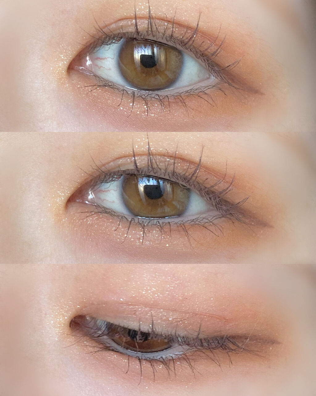 アイシャドウをグラデーションにするときに濃淡に気をつける。 アイラインはぶつっと途切れさせない! マスカラの色も重要で、ブラウンのマスカラを普段使っている方は少し赤みのあるブラウンマスカラを使ってみると、目元に自然な血色感がでてとってもおすすめです!