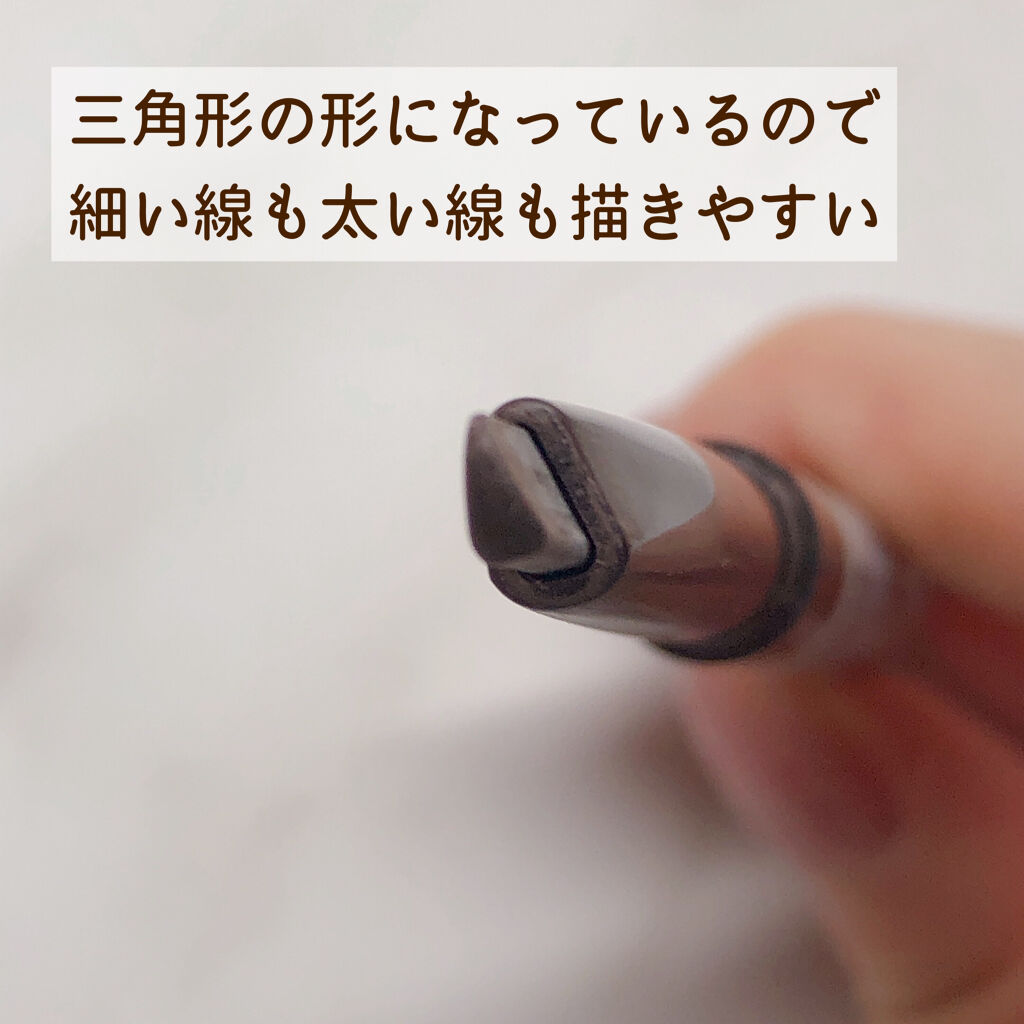 🩷メガ割購入品🩷繰り出し式のアイブロウペンシル。 程よい硬さの三角形のペンシルでスルスルと滑らかな描き心地です♡三角エッジ部分では細く、フラット部分では太くもかけて便利!一本一本の毛が増えたかのようなナチュラル仕上がり✨眉尻から眉頭まで1本...