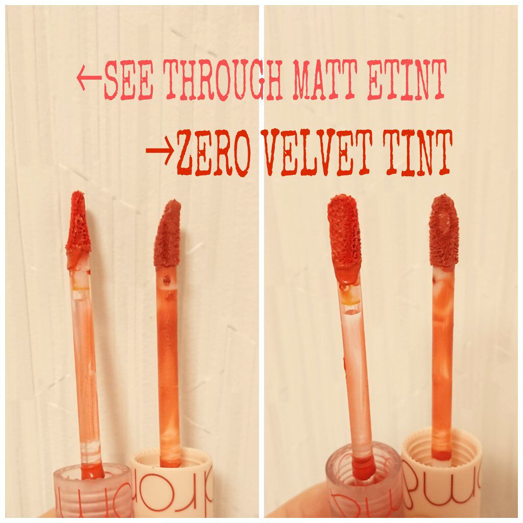 ロムアンドのマットリップ2種類4色ゲットしたので比較してみました💄シースルーマットティントとゼロベルベットティントです✨どちらもマットリップで色持ちもよく保湿力もあります!3枚目は数分おいてクレンジングで拭き取ったものですが、若干ゼロベルベッ...