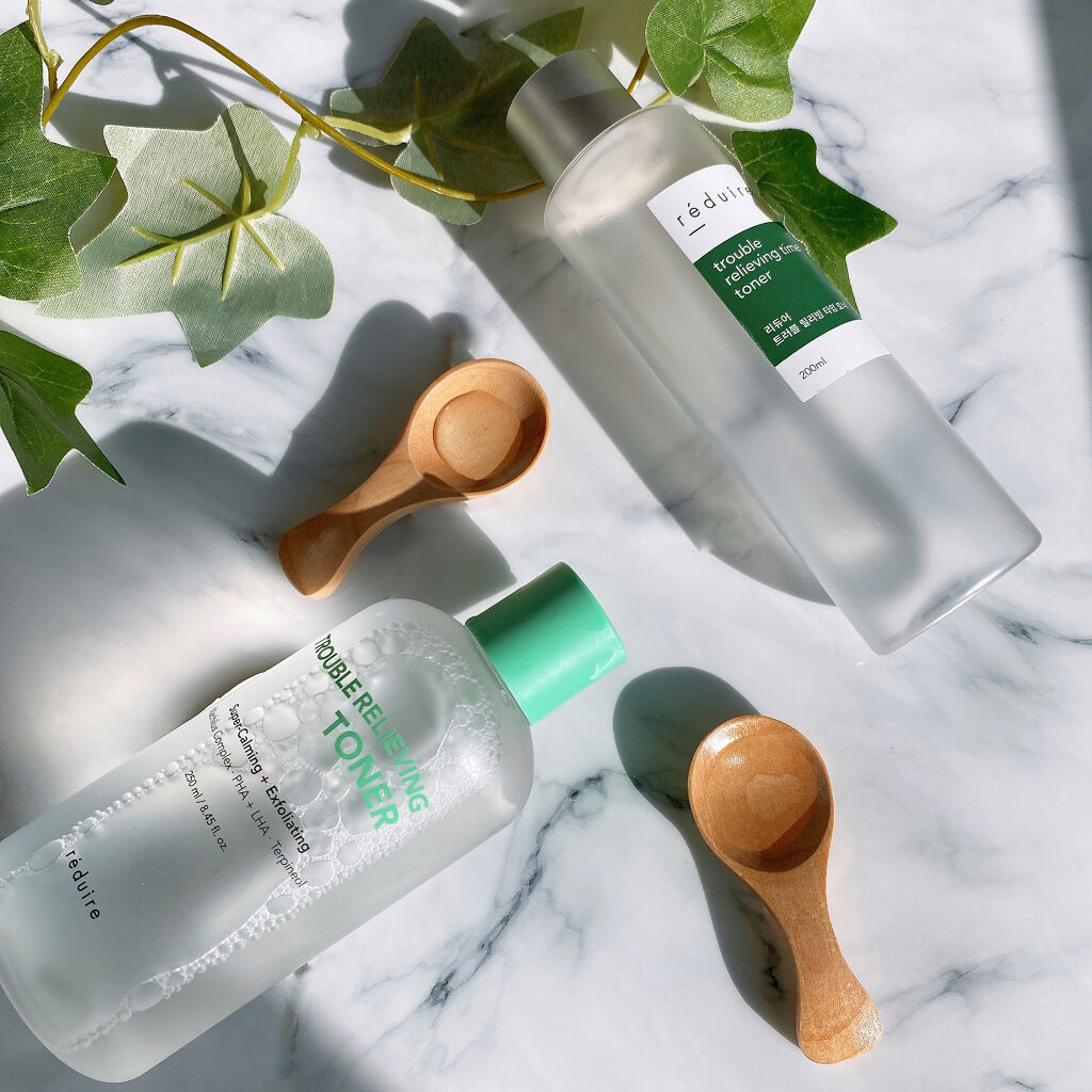 リデュアトラブルリリービングタイム・トナー・エッセンス・クリームトラブルの鎮静効果があるスキンケアシリーズ✨トナーはさっぱりしています。香りがやや好みが分かれるかなと思います🤔エッセンスは塗りやすい、クリームはクリームというよりはジェルにちか...