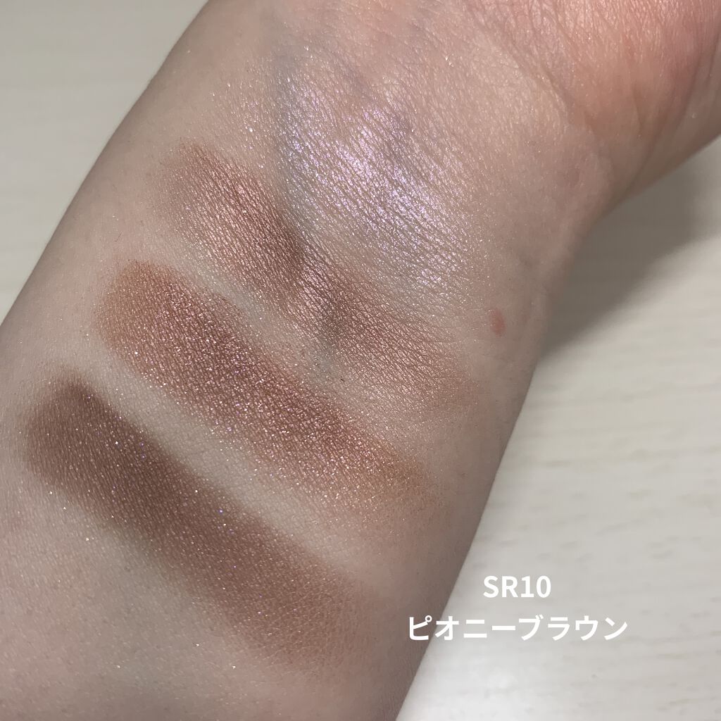 - <SR01 ベージュブラウン> トリエチルヘキサノイン、リンゴ酸ジイソステアリル、ラウリン酸亜鉛、イソステアリン酸水添ヒマシ油、ステアリン酸ソルビタン、スクワラン、ジメチコン、トコフェロール、メチルパラベン、(+/-)タルク、マイカ、金、酸化チタン、酸化鉄、水酸化Al、赤226 <SR02 リアルブラウン> トリエチルヘキサノイン、リンゴ酸ジイソステアリル、ラウリン酸亜鉛、イソステアリン酸水添ヒマシ油、ステアリン酸ソルビタン、スクワラン、ジメチコン、トコフェロール、メチルパラベン、(+/-)タルク、マイカ、金、酸化チタン、酸化鉄、水酸化Al、赤226 <SR03 ロイヤルブラウン> トリエチルヘキサノイン、リンゴ酸ジイソステアリル、ラウリン酸亜鉛、イソステアリン酸水添ヒマシ油、ステアリン酸ソルビタン、スクワラン、ジメチコン、トコフェロール、メチルパラベン、(+/-)タルク、マイカ、金、酸化チタン、酸化鉄、水酸化Al、赤226 <SR04 スモーキーブラウン> トリエチルヘキサノイン、リンゴ酸ジイソステアリル、ラウリン酸亜鉛、イソステアリン酸水添ヒマシ油、ステアリン酸ソルビタン、スクワラン、ジメチコン、トコフェロール、メチルパラベン、(+/-)タルク、マイカ、金、酸化チタン、酸化鉄、水酸化Al、赤226 <SR05 ウォームブラウン> トリエチルヘキサノイン、リンゴ酸ジイソステアリル、ラウリン酸亜鉛、イソステアリン酸水添ヒマシ油、ステアリン酸ソルビタン、スクワラン、ジメチコン、トコフェロール、メチルパラベン、(+/-)タルク、マイカ、金、酸化チタン、酸化鉄、水酸化Al、赤226 <SR06 センシュアルブラウン> トリエチルヘキサノイン、リンゴ酸ジイソステアリル、ラウリン酸亜鉛、イソステアリン酸水添ヒマシ油、ステアリン酸ソルビタン、スクワラン、ジメチコン、トコフェロール、メチルパラベン、(+/-)タルク、マイカ、金、酸化チタン、酸化鉄、水酸化Al、赤226 <SR07 マグノリアブラウン(限定)> トリエチルヘキサノイン、リンゴ酸ジイソステアリル、ラウリン酸亜鉛、イソステアリン酸水添ヒマシ油、ステアリン酸ソルビタン、スクワラン、ジメチコン、トコフェロール、メチルパラベン、(+/-)グンジョウ、コンジョウ、タルク、マイカ、金、酸化チタン、酸化鉄 <SR08 アクアティックブラウン> トリエチルヘキサノイン、リンゴ酸ジイソステアリル、ラウリン酸亜鉛、イソステアリン酸水添ヒマシ油、ステアリン酸ソルビタン、スクワラン、ジメチコン、トコフェロール、メチルパラベン、(+/-)グンジョウ、コンジョウ、タルク、マイカ、金、酸化チタン、酸化鉄 <SR09 ベビーブラウン> トリエチルヘキサノイン、リンゴ酸ジイソステアリル、ラウリン酸亜鉛、イソステアリン酸水添ヒマシ油、ステアリン酸ソルビタン、スクワラン、ジメチコン、トコフェロール、メチルパラベン、タルク、ホウケイ酸(Ca/Al)、マイカ、金、酸化チタン、酸化鉄、赤226 <SR10 ピオニーブラウン> トリエチルヘキサノイン、リンゴ酸ジイソステアリル、ラウリン酸亜鉛、イソステアリン酸水添ヒマシ油、ステアリン酸ソルビタン、スクワラン、ジメチコン、トコフェロール、メチルパラベン、グンジョウ、タルク、マイカ、金、酸化チタン、酸化鉄 <SR11 ブリックブラウン> トリエチルヘキサノイン、リンゴ酸ジイソステアリル、ラウリン酸亜鉛、イソステアリン酸水添ヒマシ油、ステアリン酸ソルビタン、スクワラン、ジメチコン、トコフェロール、メチルパラベン、タルク、マイカ、金、酸化チタン、酸化鉄、赤202、赤226 <SR12 デニッシュブラウン(限定)> トリエチルヘキサノイン、リンゴ酸ジイソステアリル、ラウリン酸亜鉛、イソステアリン酸水添ヒマシ油、ステアリン酸ソルビタン、スクワラン、ジメチコン、シリカ、トコフェロール、ホウケイ酸(Ca/Al)、酸化スズ、メチルパラベン、グンジョウ、タルク、マイカ、金、酸化チタン、酸化鉄、赤226 <SR01'23 ベージュブラウン(限定デザイン)> トリエチルヘキサノイン、リンゴ酸ジイソステアリル、ラウリン酸亜鉛、イソステアリン酸水添ヒマシ油、ステアリン酸ソルビタン、スクワラン、ジメチコン、トコフェロール、メチルパラベン、(+/-)タルク、マイカ、金、酸化チタン、酸化鉄、水酸化Al、赤226 <SR03'23 ロイヤルブラウン(限定デザイン)> トリエチルヘキサノイン、リンゴ酸ジイソステアリル、ラウリン酸亜鉛、イソステアリン酸水添ヒマシ油、ステアリン酸ソルビタン、スクワラン、ジメチコン、トコフェロール、メチルパラベン、(+/-)タルク、マイカ、金、酸化チタン、酸化鉄、水酸化Al、赤226 <SR11'23 ブリックブラウン(限定デザイン)> トリエチルヘキサノイン、リンゴ酸ジイソステアリル、ラウリン酸亜鉛、イソステアリン酸水添ヒマシ油、ステアリン酸ソルビタン、スクワラン、ジメチコン、トコフェロール、メチルパラベン、(+/-)タルク、マイカ、金、酸化チタン、酸化鉄、水酸化Al、赤226 <SR13 ヘーゼルブラウン(限定)> トリエチルヘキサノイン、リンゴ酸ジイソス