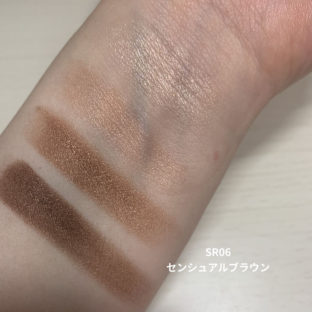 - 【ポイント】 1.失敗しらずのブラウンベースの4色パレット!簡単にグラデーションを実現。 2.しっとりリッチな質感!するする伸びて粉飛びもなく目元の乾燥も防ぎます。 3.上品な輝きの繊維パール+金パールを贅沢に配合。ギラつかない大人のツヤを演出。 <SR01'23・SR03'23・SR06'23・SR11'23(限定デザイン)> 実力派グラデアイシャドウからデジタルアートをあしらった限定デザイン登場。 しっとりリッチな密着感。肌のなじみの良い実力派グラデアイシャドウ。